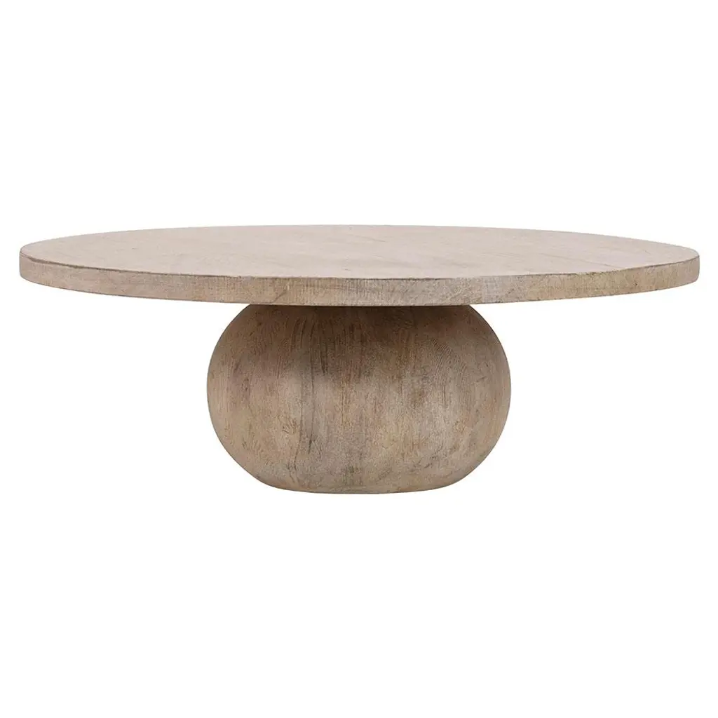 Sculptural Round Table Crafted From Solid Mango Wood, Natural Finish