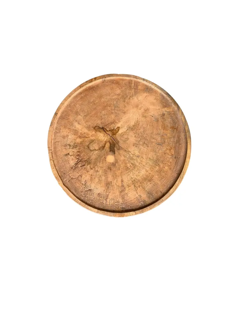 Sculptural Round Table Crafted From Solid Mango Wood, Natural Finish