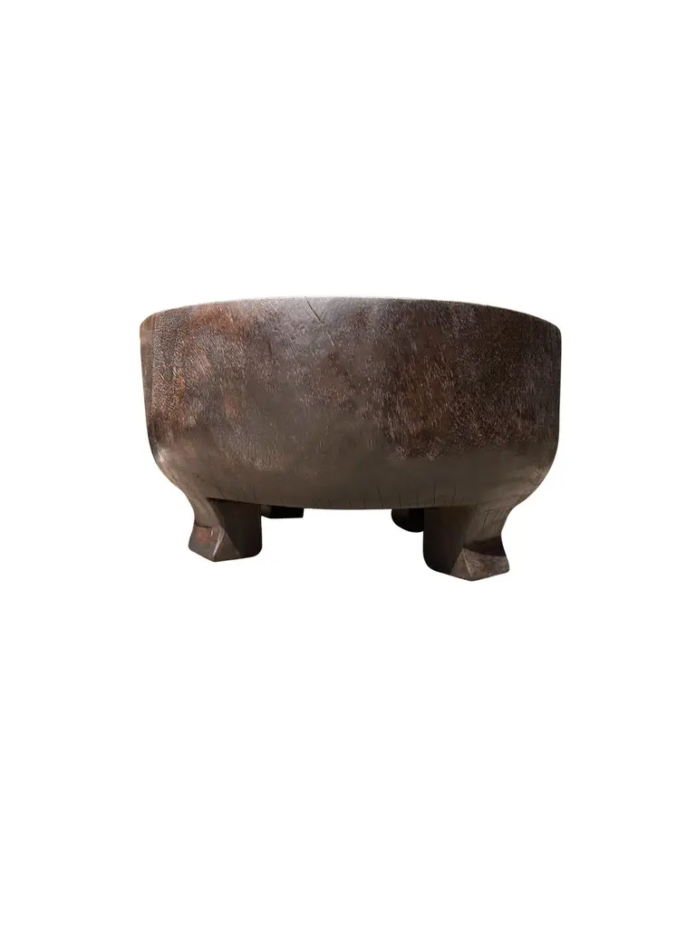 Sculptural Round Table Crafted From Solid Suar Wood, Natural Finish