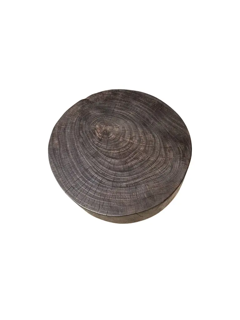 A wonderfully sculptural round side table featuring a natural finish. Its neutral pigment and subtle wood texture makes it perfect for any space. A uniquely sculptural and versatile piece certain to invoke conversation. This table was crafted from Suar wood and has a smooth texture. The table sits on four curved feet that blend wits its contours.