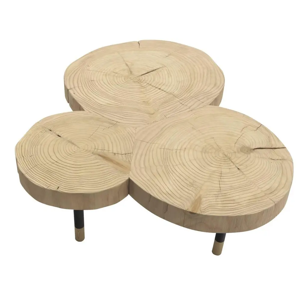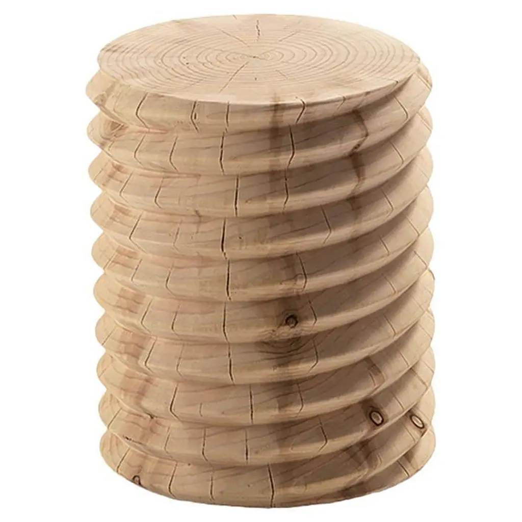 Sculptural Round Table Crafted From Solid Suar Wood Stacked Design