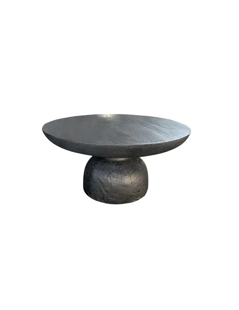Sculptural Round Table Mango Wood, Burnt Finish, Modern Organic