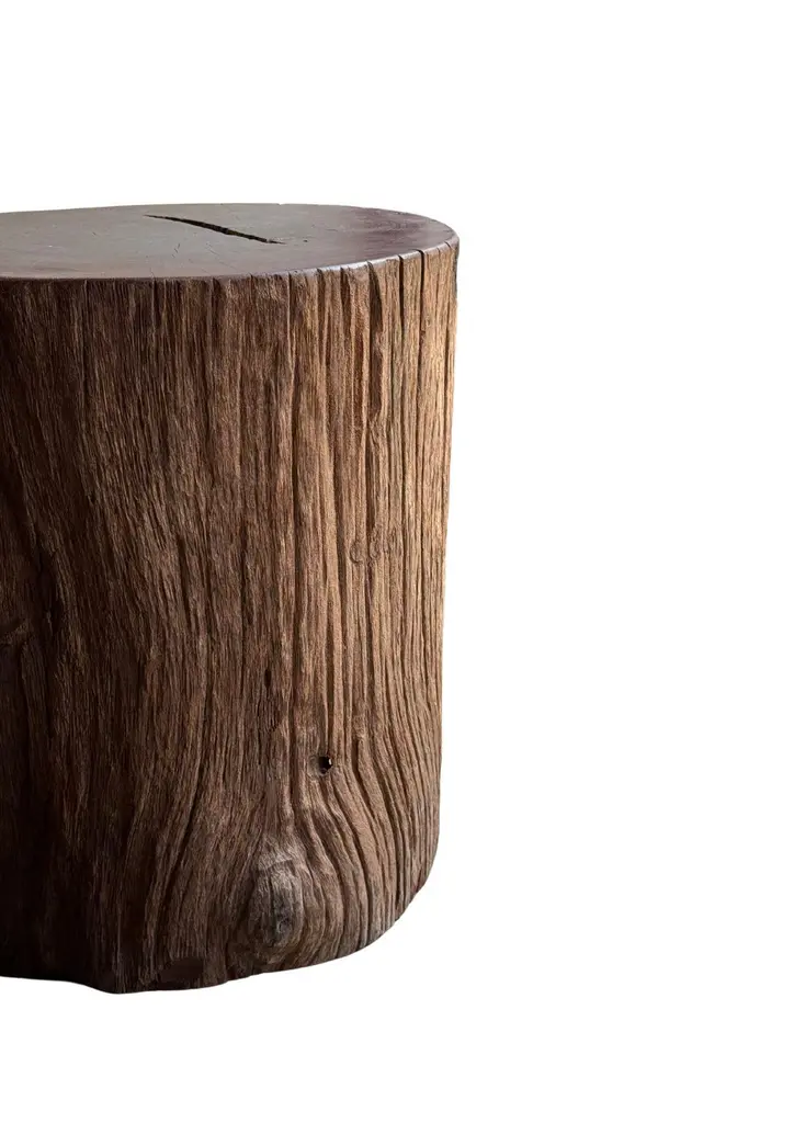 Crafted from resilient ulin wood—also known as Bornean ironwood—this side table is a true statement of natural elegance and durability. Its refined, sculptural form highlights the wood’s organic texture, with flowing grain patterns and rich tonal variations ranging from deep browns to warm golden hues. Each table showcases a unique interplay of light and shadow across its surface, emphasizing the handcrafted detailing and the dense, polished finish that ironwood is renowned for. Subtle curves and clean lines balance rustic charm with modern sophistication, making it a versatile piece that complements both minimalist and earthy interiors. A timeless accent designed to age beautifully and elevate any space with its quiet strength and distinctive character.