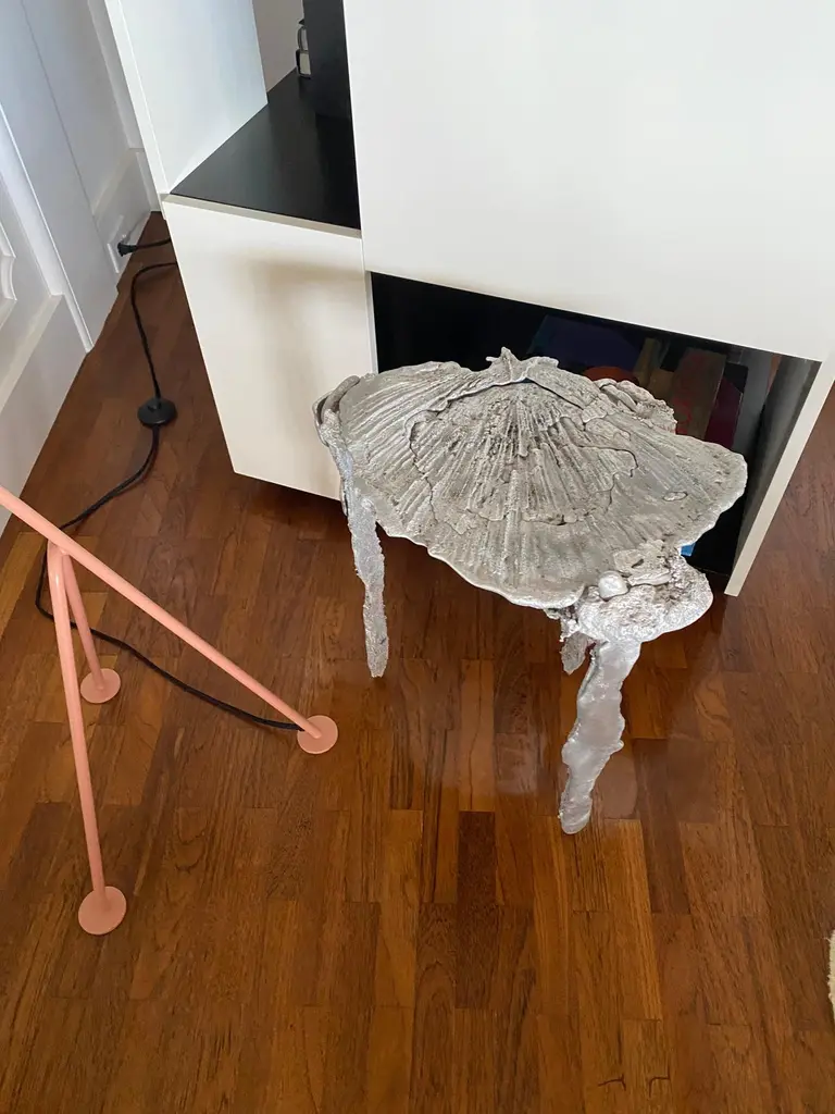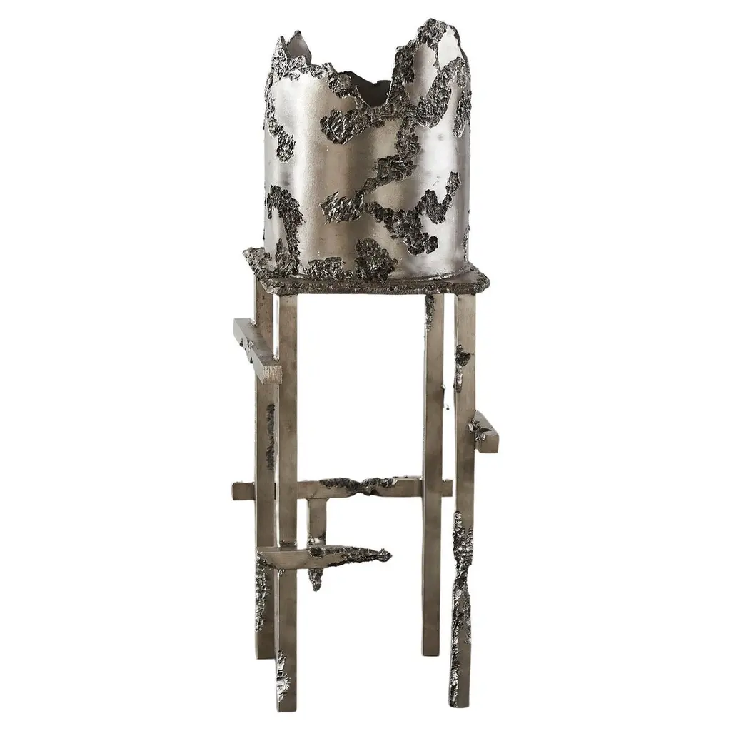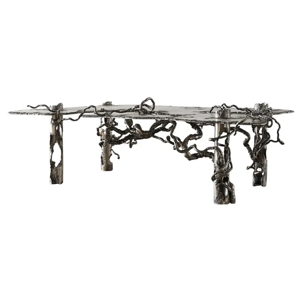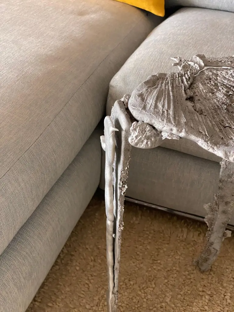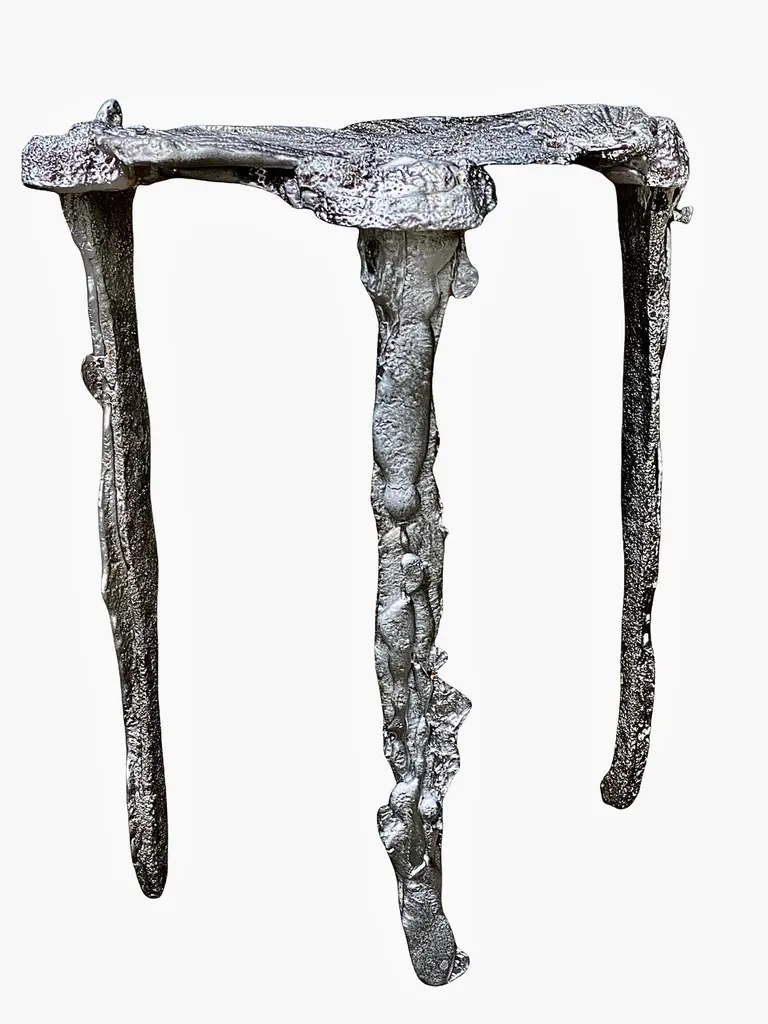 Sculptural Side Table In Pewter And Aluminum Metal 21st Century By Mattia Biagi