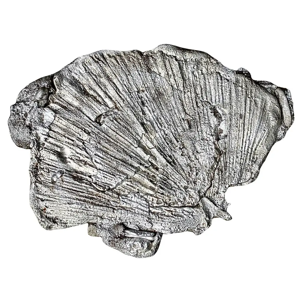 This is a new work by Mattia Biagi made in Pewter and aluminum and sand cast in Hawaii inspired by the contrast of organic shapes of a leaf with bold linear structure edition of 1.