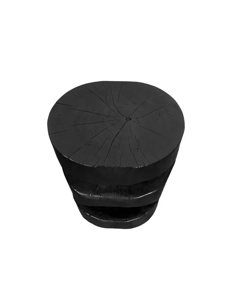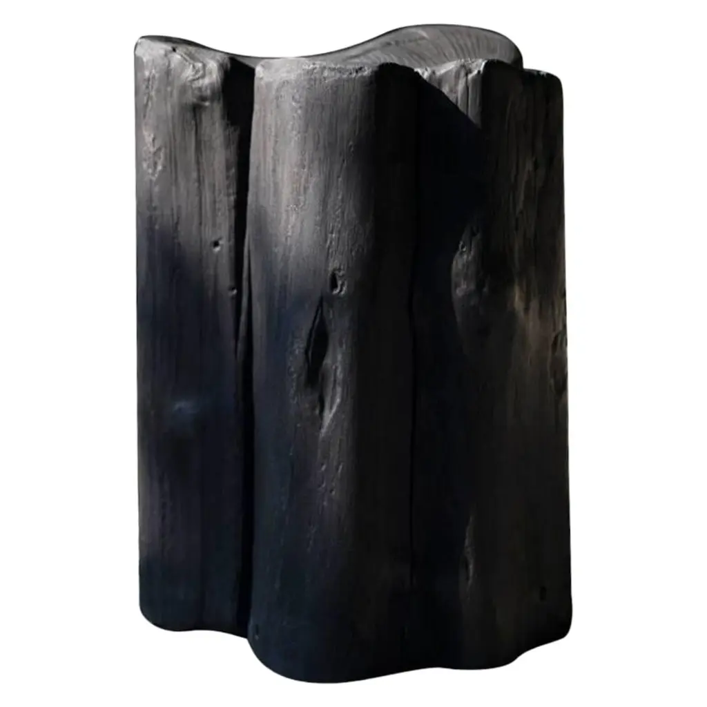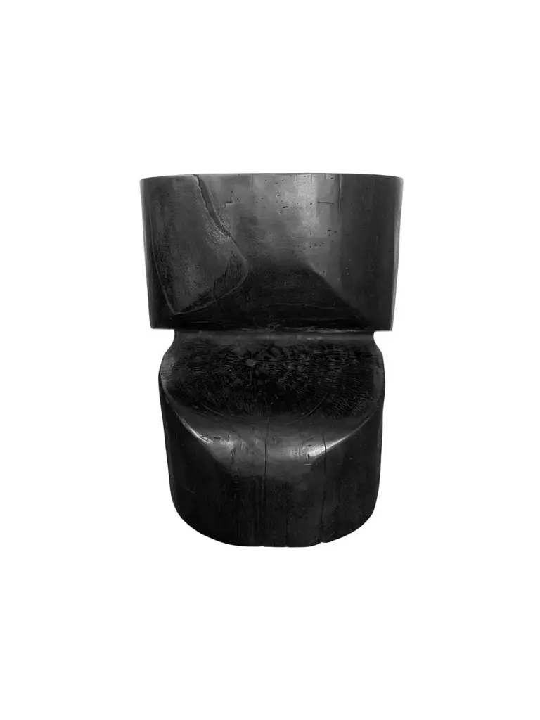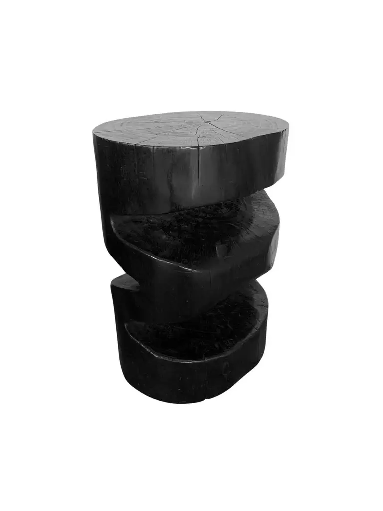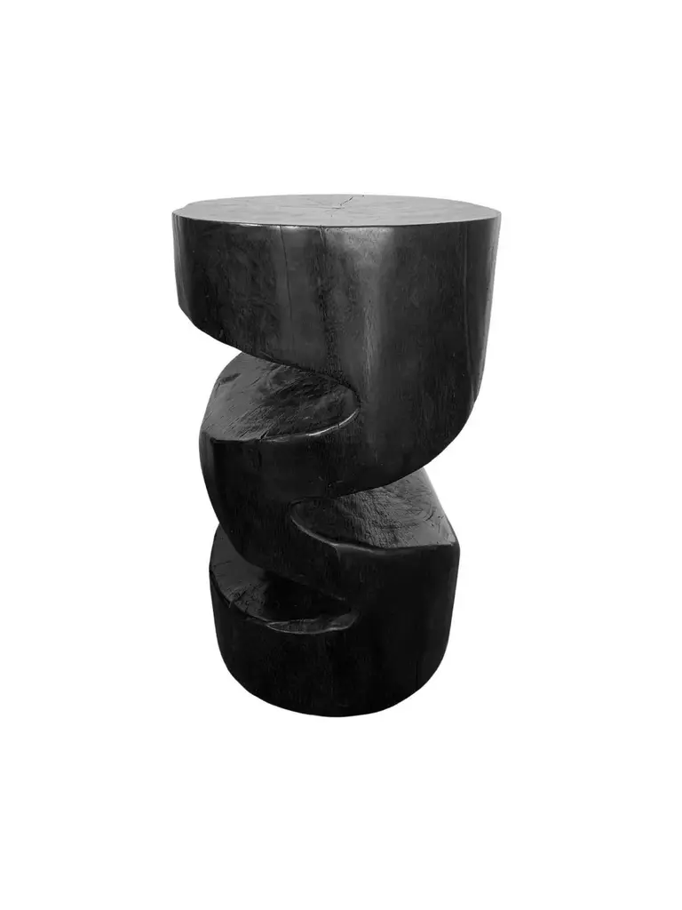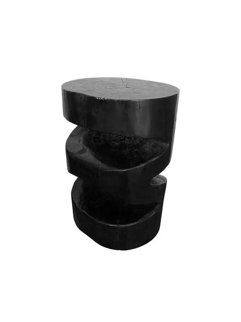 Sculptural Side Table Solid Mango Wood Burnt Finish Modern Organic