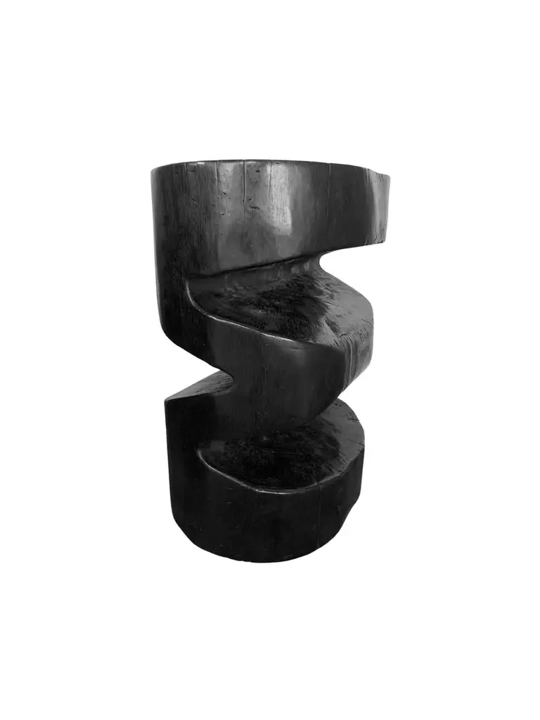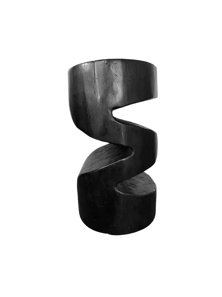 A wonderfully sculptural side table with a mix of wood textures and shades. It features a waved design. A uniquely sculptural and versatile piece, this chair was crafted from a single block of mango wood and has a smooth texture. Meticulously carved, sanded and smoothed to the perfect shape. To achieve its color the wood was burnt numerous times and then finished with a clear coat.