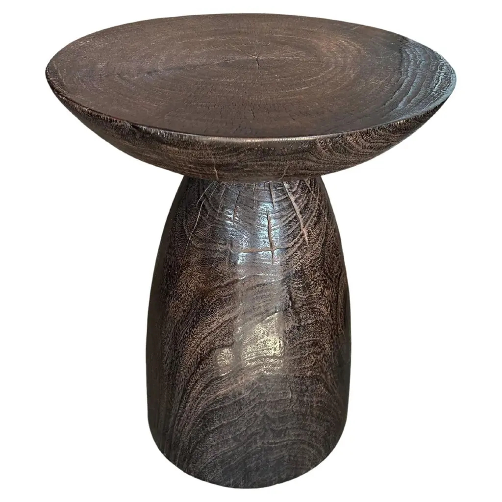 Sculptural Side Table Solid Mango Wood, Hand-Hewn Detailing, Modern Organic