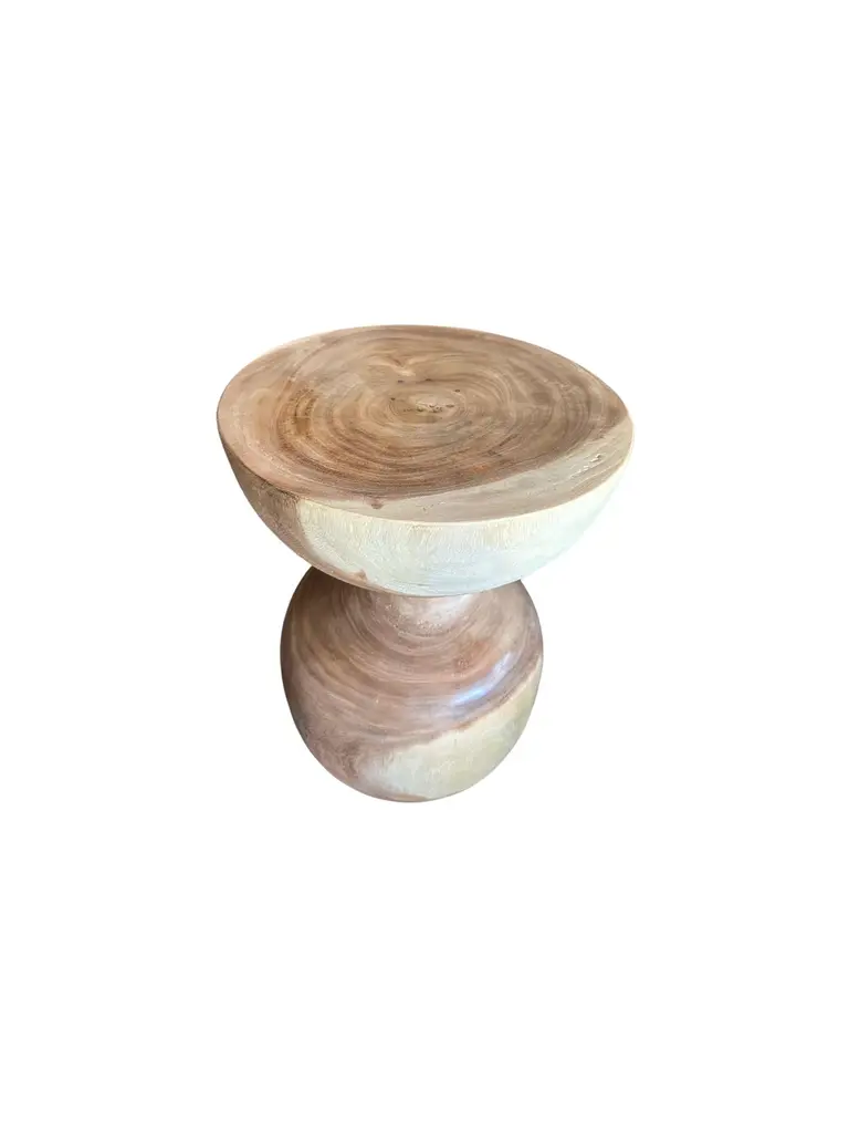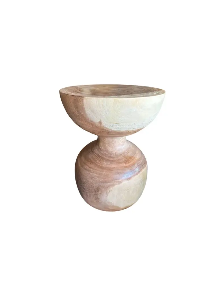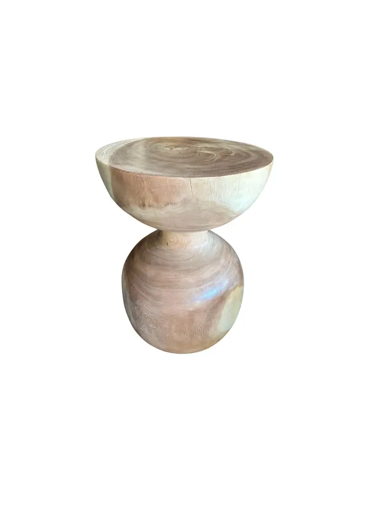 Sculptural Side Table Solid Suar Wood, Natural Finish