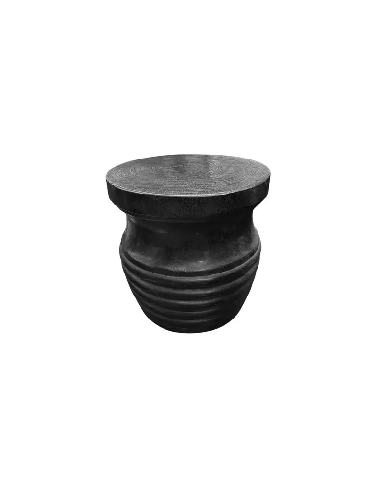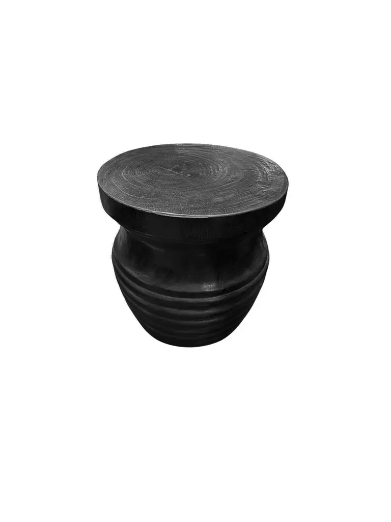 Sculptural Solid Mango Wood Round Side Table Modern Organic, Burnt Finish