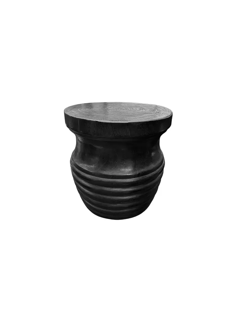 This elegant black round side table features a unique burnt finish that enhances its striking aesthetic. The rich, dark hue is beautifully contrasted by the intricate carved detailing along the sides, which showcases skillful craftsmanship and adds a touch of sophistication. The table’s smooth, rounded top provides a perfect surface for displaying decor or holding drinks, while its sturdy base ensures stability. Whether placed beside a sofa or in a cozy reading nook, this table combines style and functionality, making it a standout piece in any room.