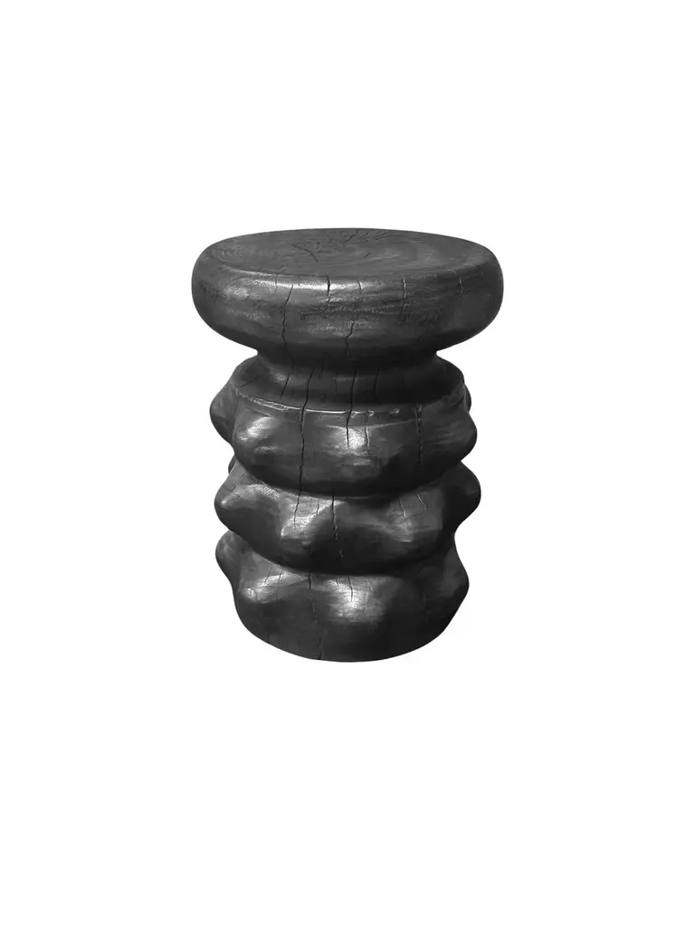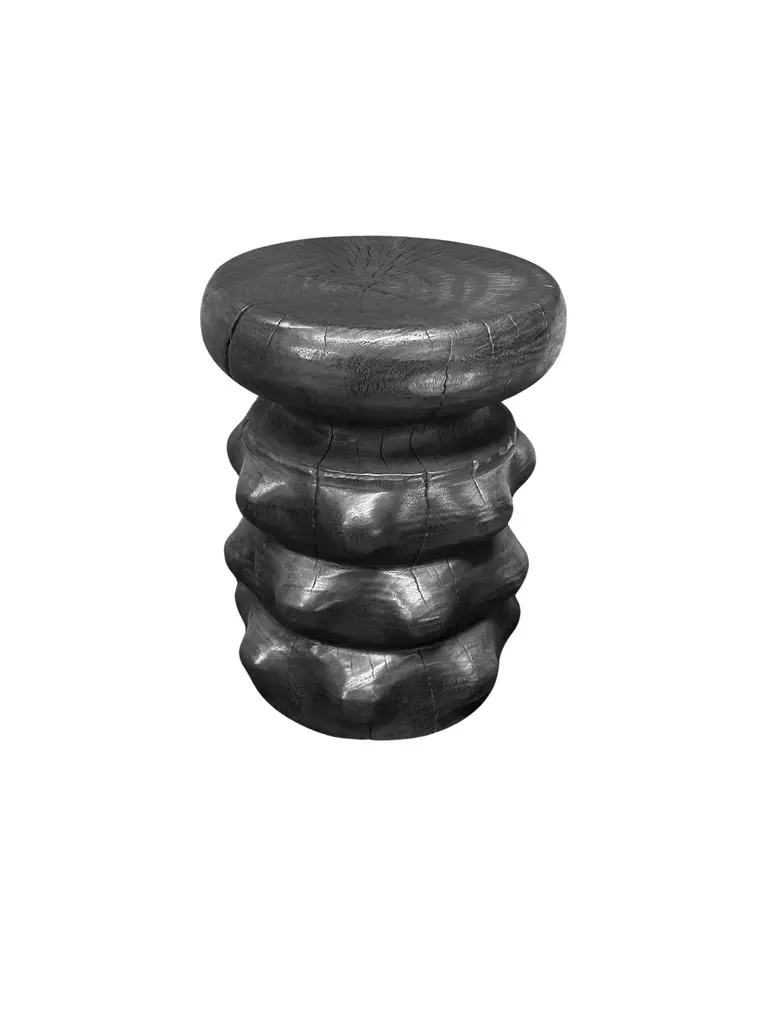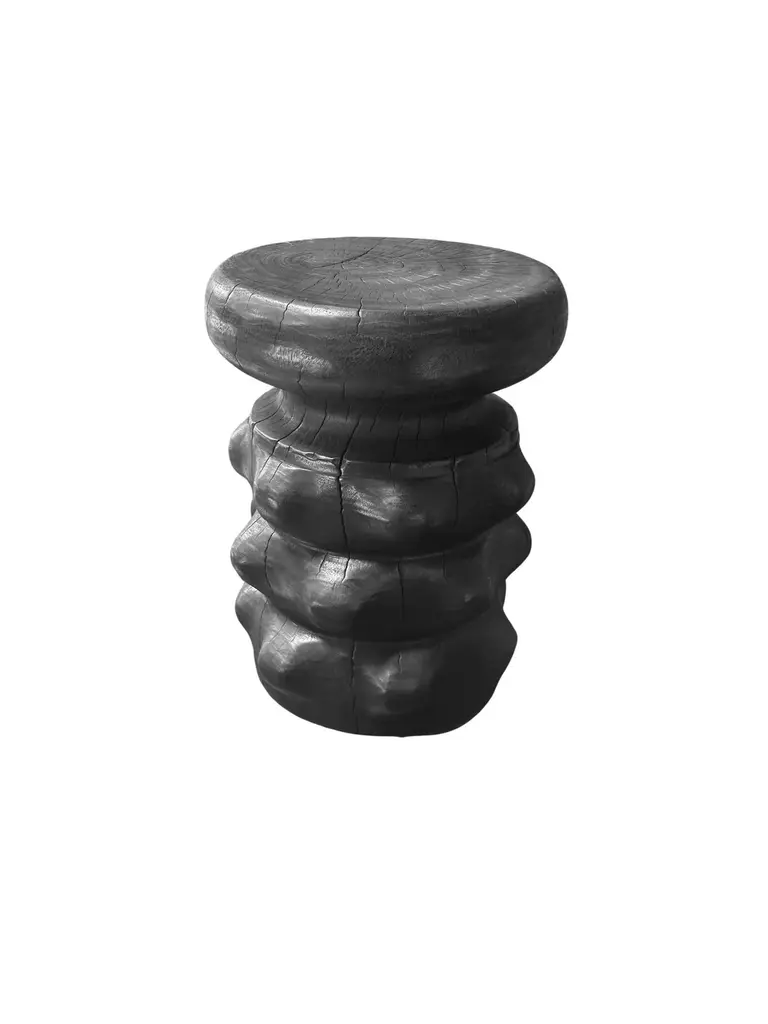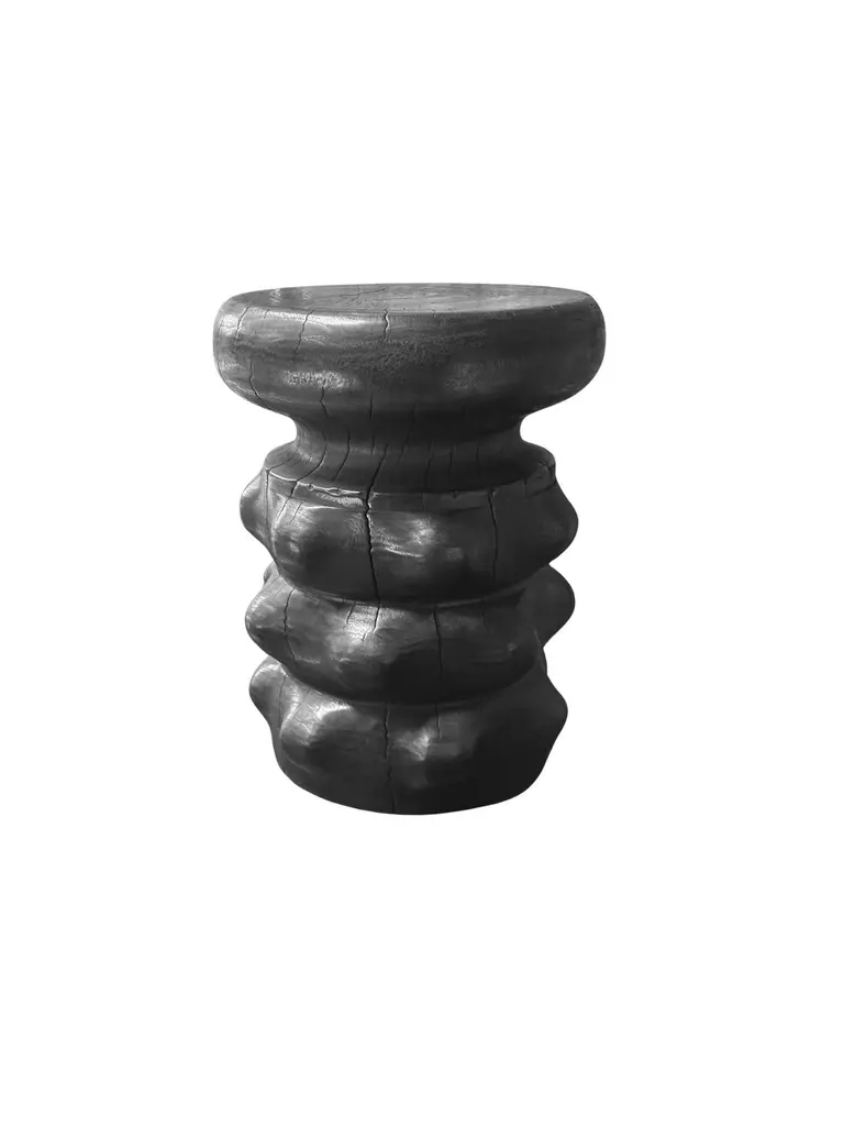 Sculptural Solid Mango Wood Round Side Table Modern Organic, Burnt Finish