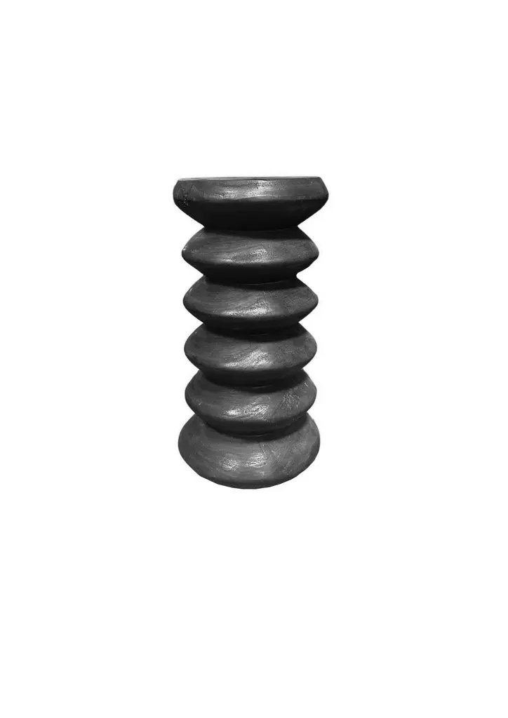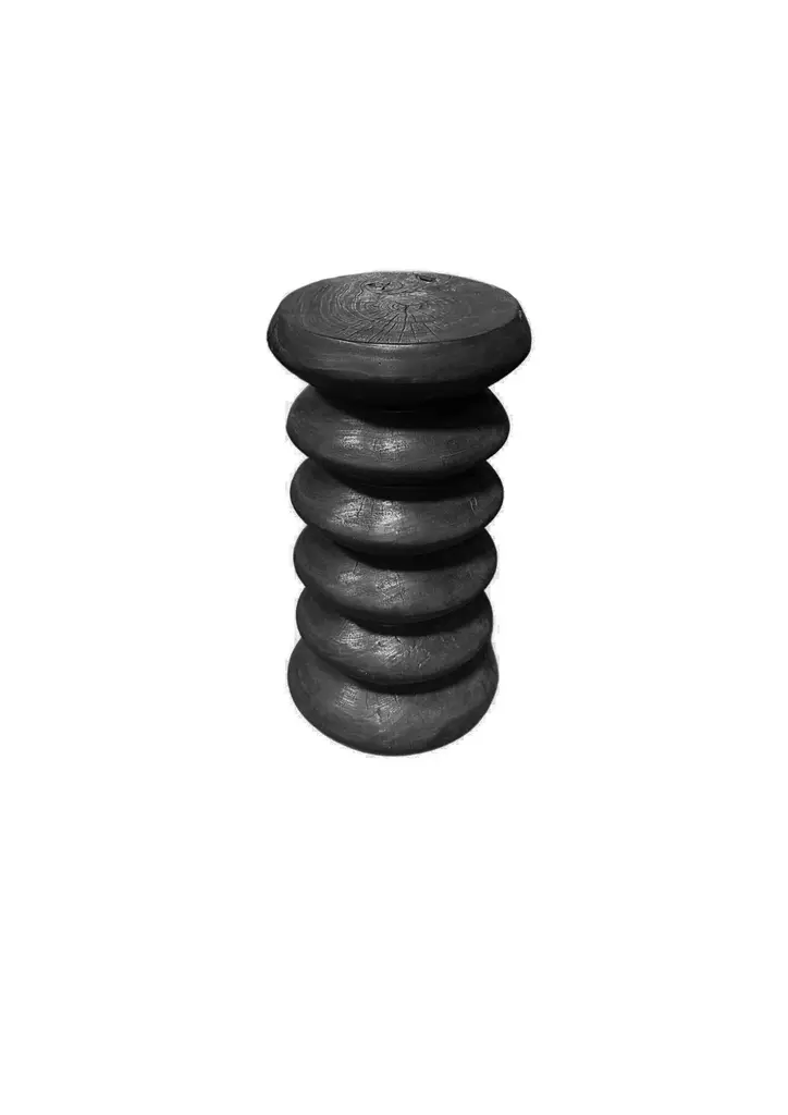 Crafted from solid mango wood, this striking side table features a bold burnt-black finish that enhances its natural grain and rich textures. Its unique stacked design creates a sculptural silhouette, blending contemporary artistry with organic warmth. Smooth yet deeply detailed, the charred surface highlights the wood’s intricate patterns, adding depth and character to any space. Both functional and visually captivating, this table is a statement piece that seamlessly complements modern, rustic, or minimalist interiors.