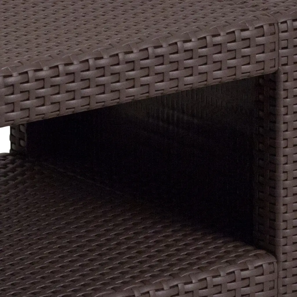 Complete your outdoor arrangement with this accent end table and add depth and texture to your outdoor look with a vase of summer flowers, some nautical decor or colorful glass sculptures. The durable frame offers a stylish appearance giving you the perfect place to rest your wine glass or your tired feet. This table features a lower shelf for storing plates and glasses or your pool towels and sunscreen. No matter how you use it this table is a must have.