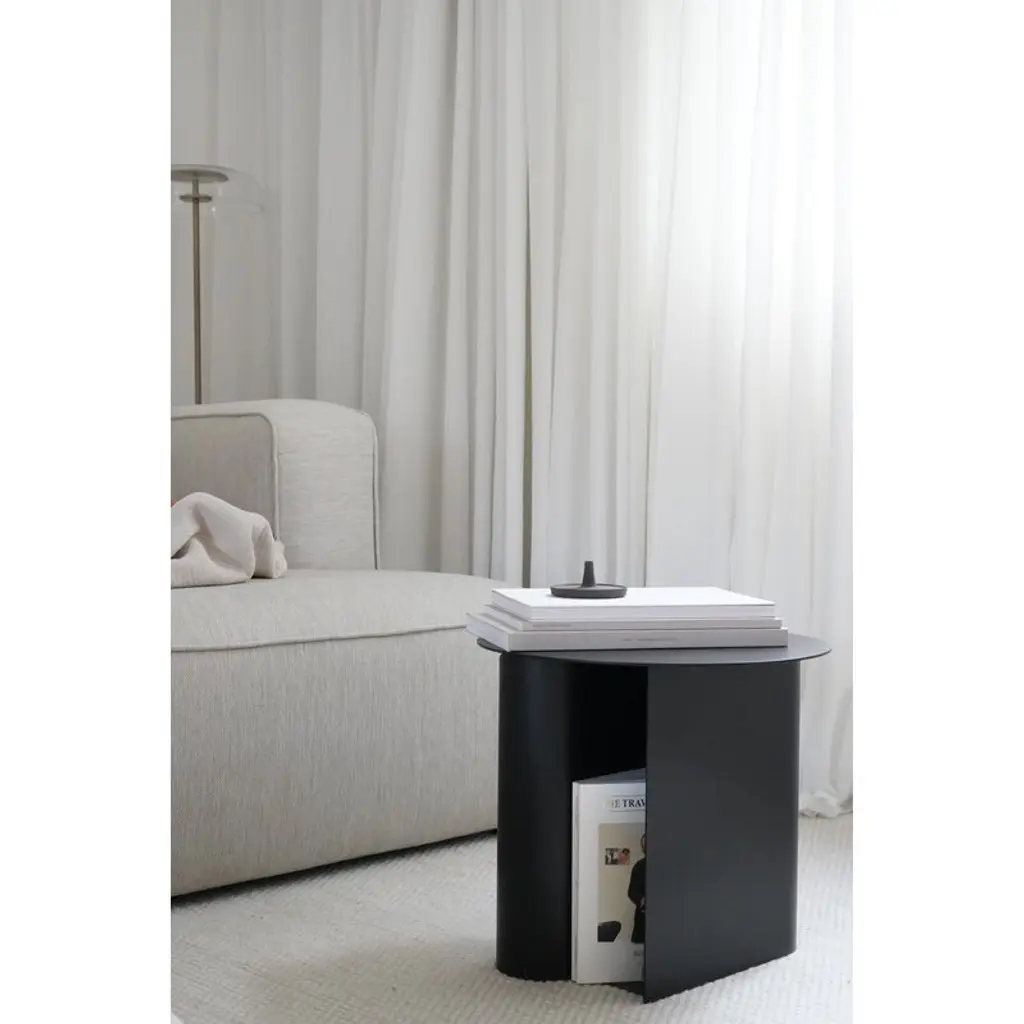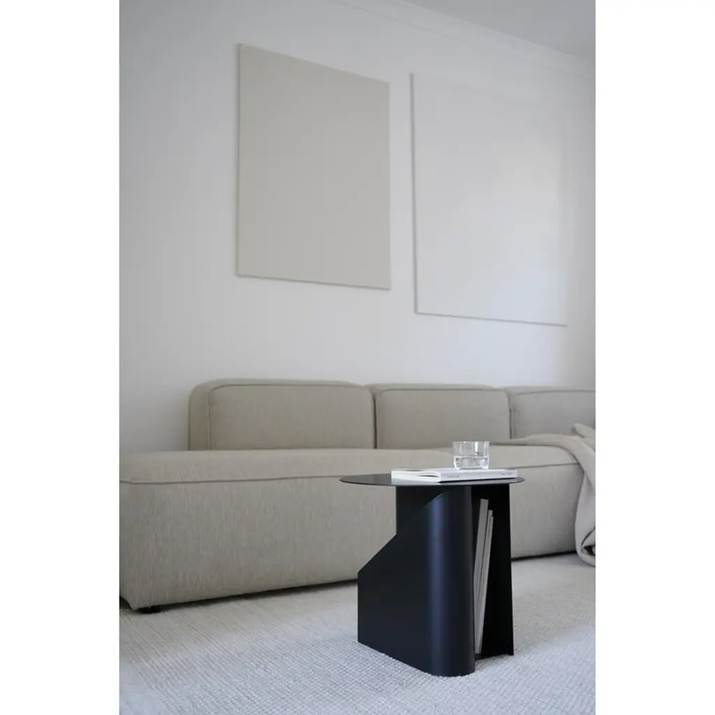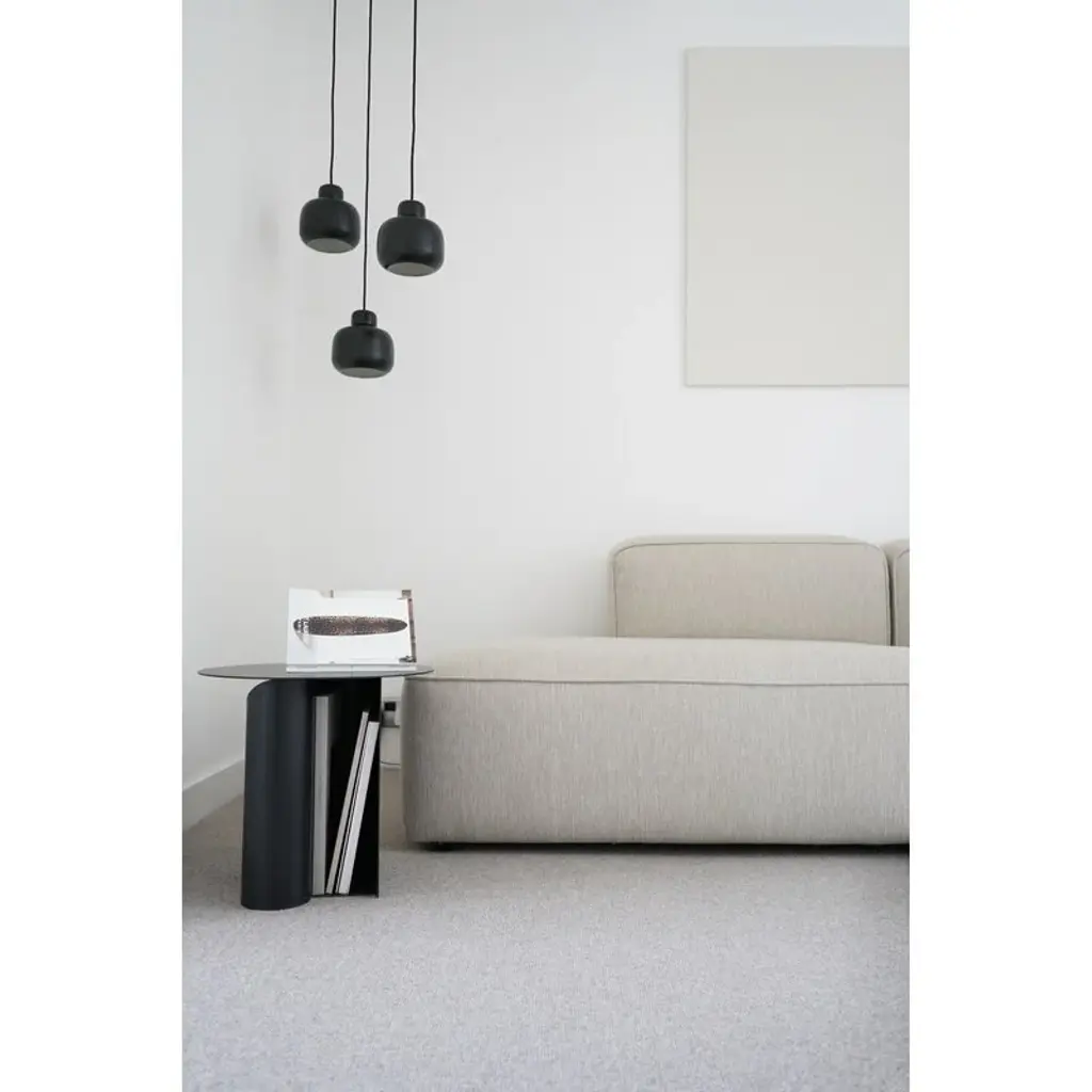Woud’s Sentrum side table is characterized by an extremely simple yet easily recognizable design combining functionality and geometric elements. Under the round tabletop is an S-shaped construction, which creates a convenient storage space, for instance, for magazines or books. The sculpturally shaped Sentrum side table is made of painted metal and designed by the Schmahl + Schnippering duo.