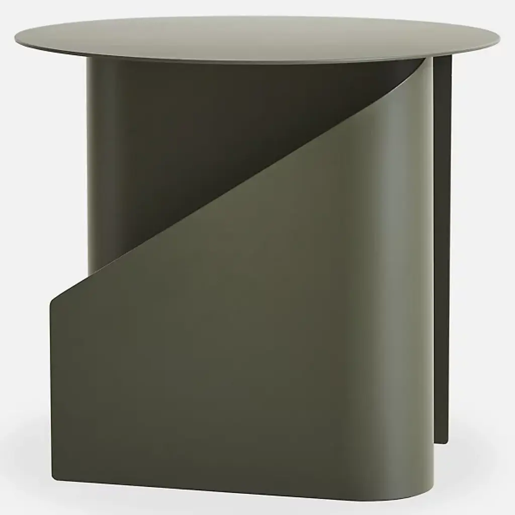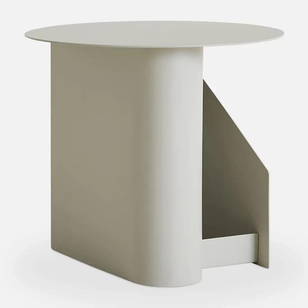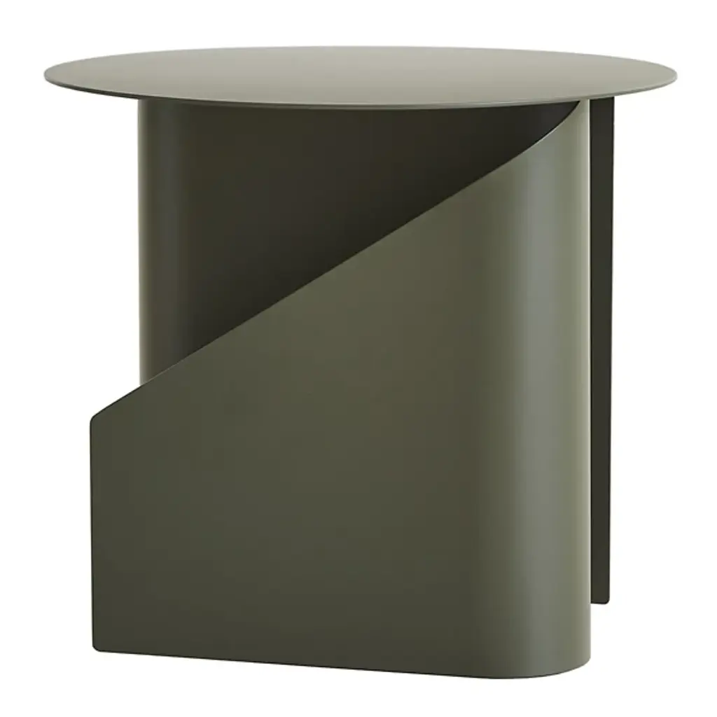 Celebrate fine craftsmanship with the Sentrum Side Table by Woud. A circular tabletop of durable wood is situated over a contoured body. This table forms an elegant silhouette created by its slanted body. With space for storage on either side, this furnishment lets you easily organize your home. The Sentrum Side Table is made in the Scandinavian tradition of design, celebrating a graphic style that is defined by a clean, essential appearance.