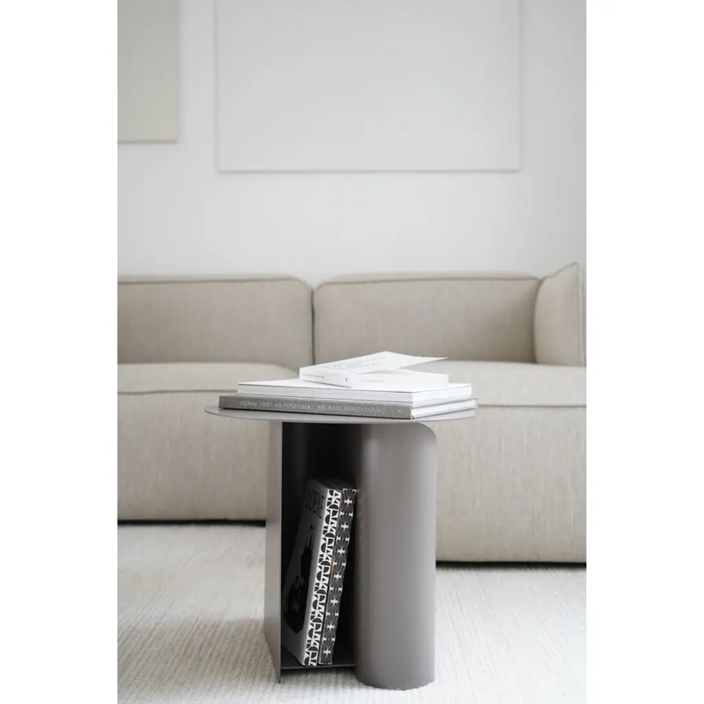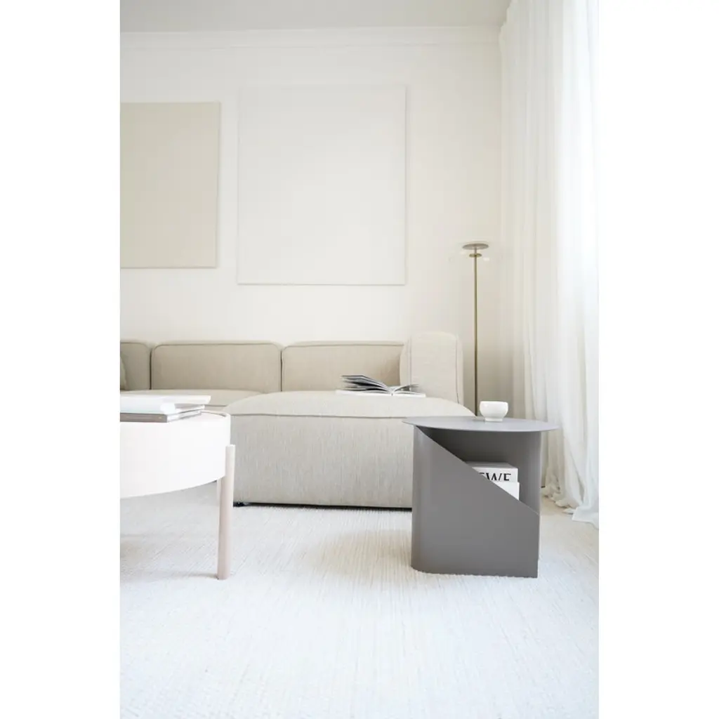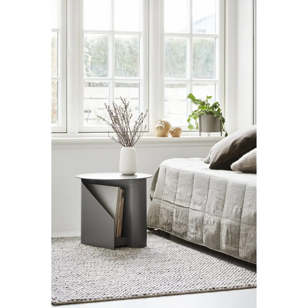 Woud’s Sentrum side table is characterized by an extremely simple yet easily recognizable design combining functionality and geometric elements. Under the round tabletop is an S-shaped construction, which creates a convenient storage space, for instance, for magazines or books. The sculpturally shaped Sentrum side table is made of painted metal and designed by the Schmahl + Schnippering duo.