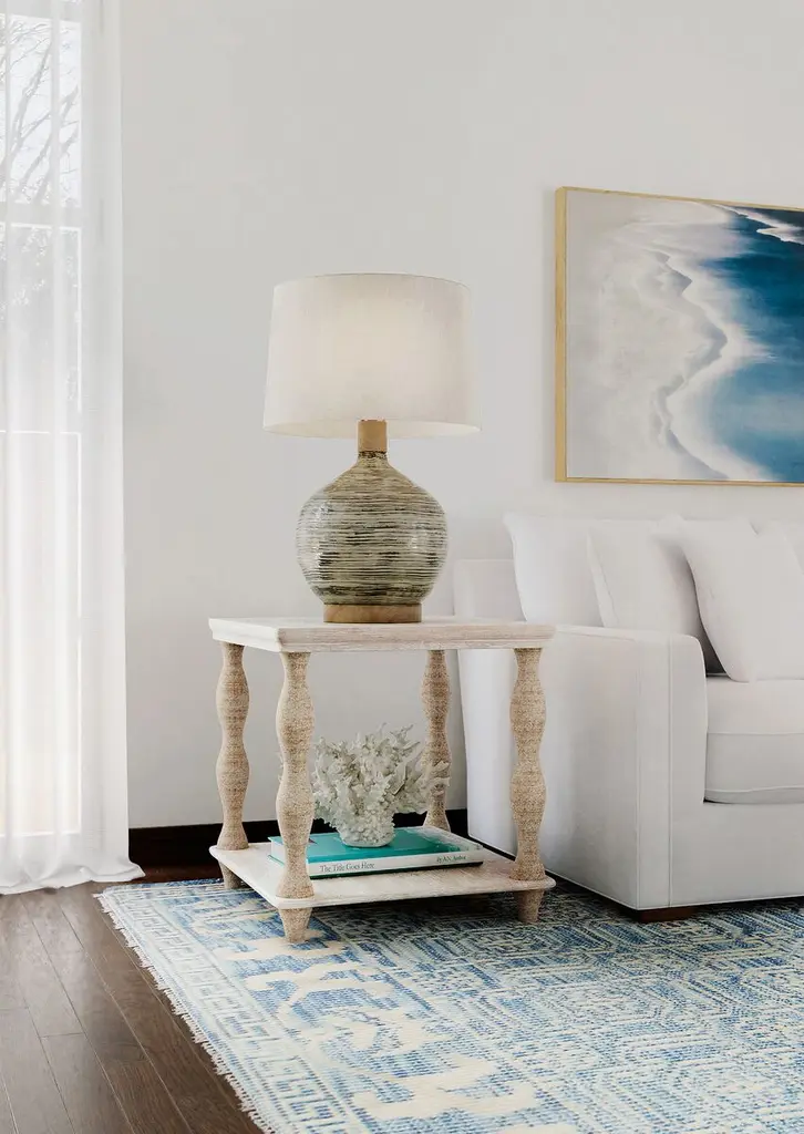 Serenity Bahari Whitewashed Rope Lamp Table, Surf