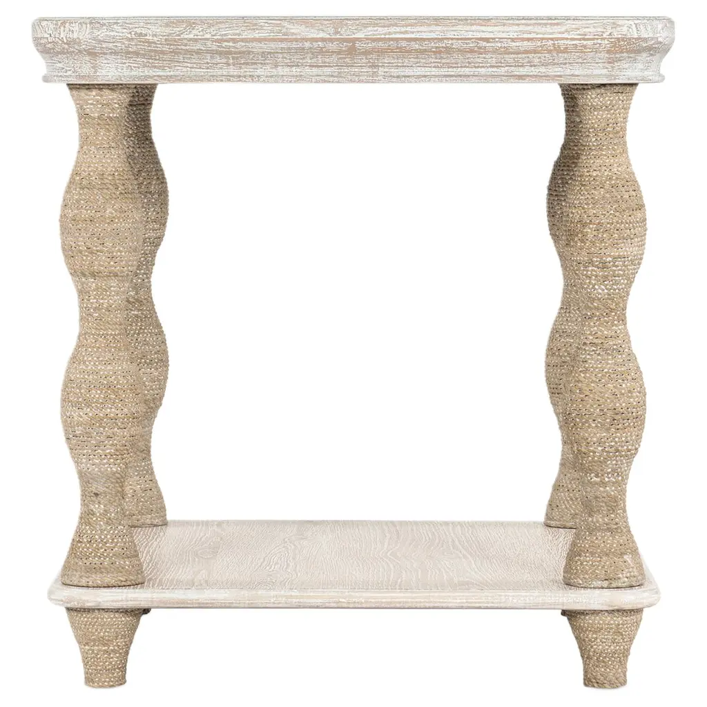 With a refreshing nautical appeal, the Bahari Lamp Table combines shaped legs wrapped in whitewashed rope with a light and airy wire-brushed finish over Oak Veneers for a look inspired by casual waterfront living. One fixed shelf.
