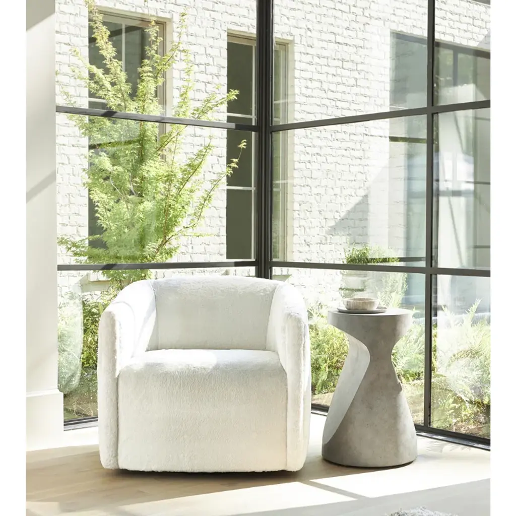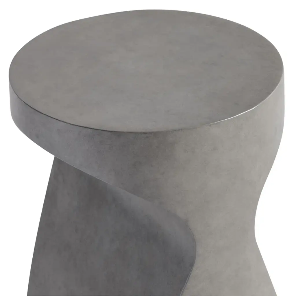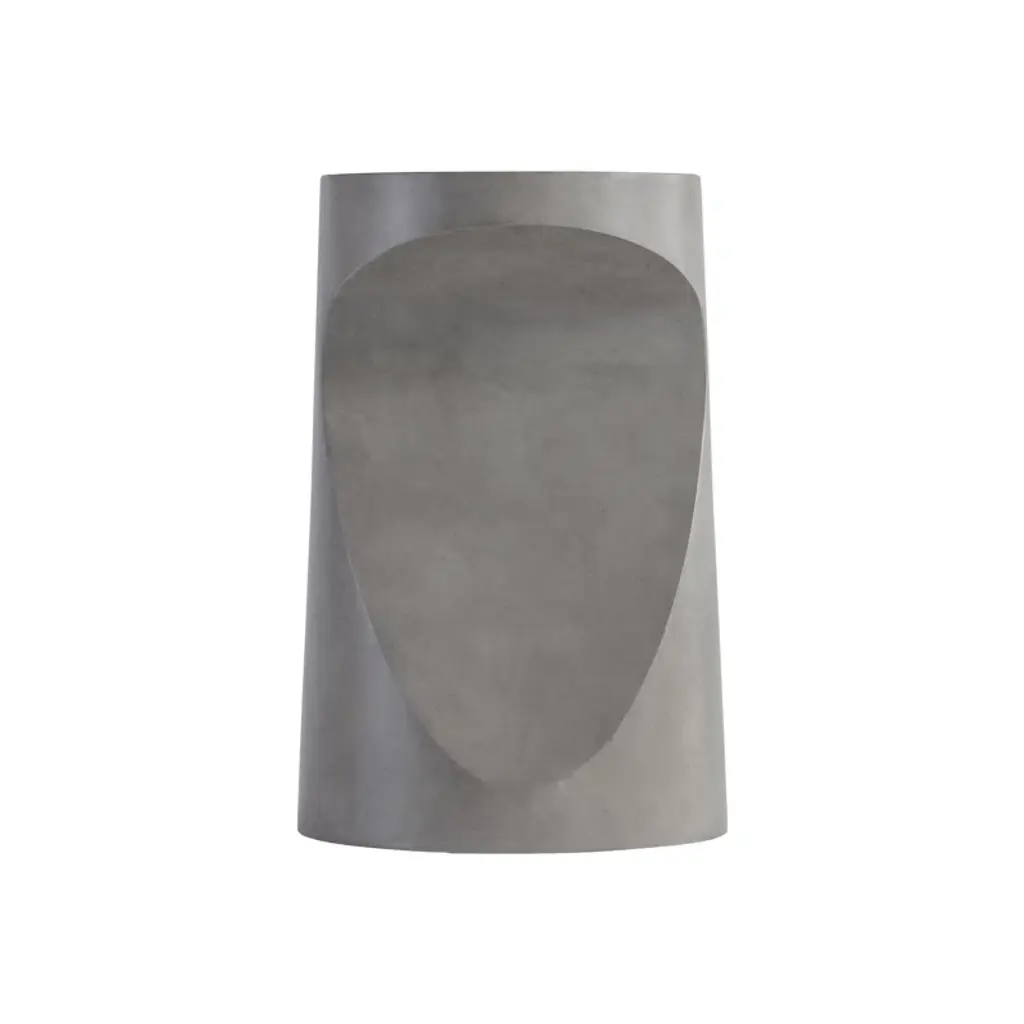 Concave shaping on the sides offers a quiet beauty for the Sereno accent table. Soft lines and simple shaping are rendered in cast resin with textured faux stone in the Sasso finish.