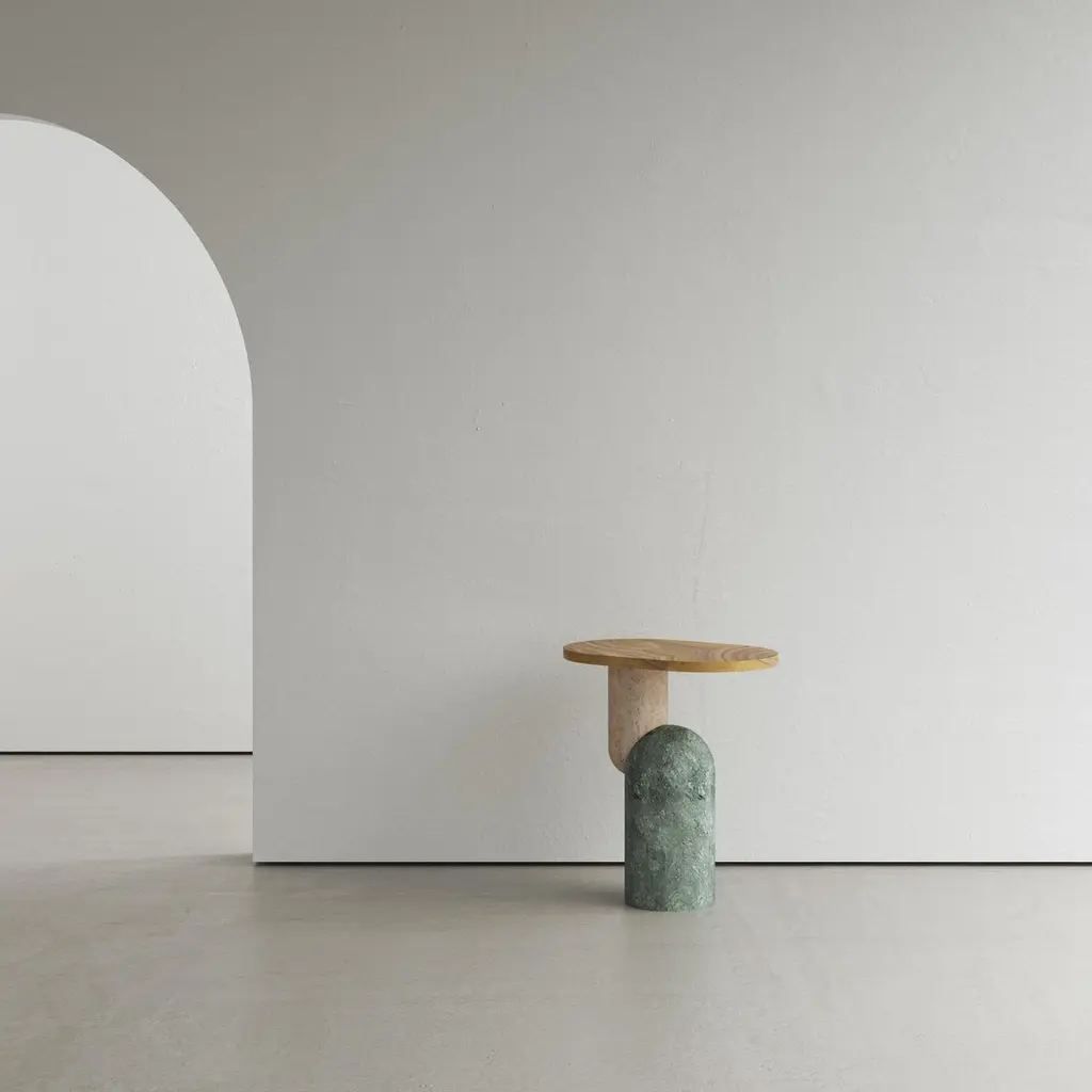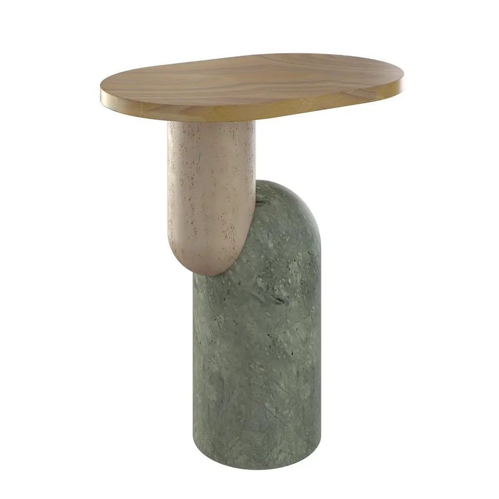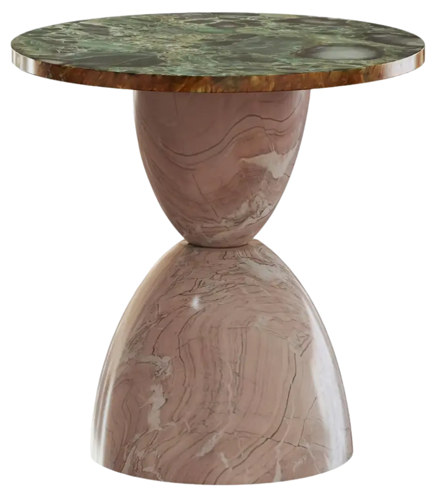 Sertão Side Table by Gabriela CamposDimensions: D30 x W45 x H50 cm.Materials: orange onyx + Travertino + guatemala greenThis piece is a tribute to the work “Abaporu” (1928) by Tarsila do Amaral, which played a key role in the emergence of the modernist movement in Brazil. Sinuous and involving, the piece incorporates the central elements of Tarsila's painting, with its vivid colors and unique shapes and soul.Mais Alma is a design studio BASED in Rio de Janeiro, founded by architect and designer Gabriela Campos. Her work has a contemporary and welcoming approach: a comfortable and timeless aesthetic that combines warm materials and clean lines, with soft palettes and finedetails.