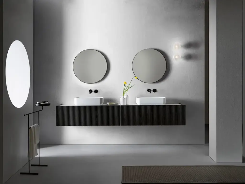 SERVETTO KIMONO is a valet stand made of metal with matte black finish, sled base and matte black side table.Useful functional and with a touch of irony, episode Two completes and enriches the collection of coat rack/towel rack complements and accessories. Objects with a strong aesthetic character that freely complement bathroom furniture.Fully customizable: both the stem and the additional element can be painted in the preferred RAL color.Also available with matte black metal components and additional elements in the requested RAL color.