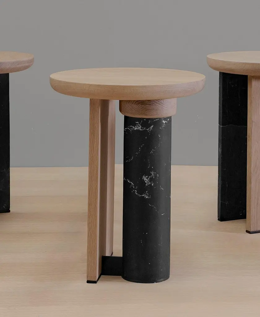 Set of 2 Antropología side tables by Raúl de la CerdaDimensions: D 40 x W 40 x H 50 cmMaterials: oak wood, Negro Monterrey marble.Solid holm white oak with Negro Monterrey marble side table.Raul de la Cerda is an interdisciplinary designer originally from Mexico City, trained in Mexico, Paris and Madrid. Since 2016 Raul has directed his design studio RAUL DE LA CERDA ESTUDIO, as well as being the creative director of Artelinea.Raul's work goes back to the origin of the materials he uses the most: wood, stone and metal. He does not hide his designs under indirect layers, but reduces them to their essence. His inspiration is life, his continuous curiosity about things, travel, art, his family, the people around him, his country; Mexico, its history and the passion and desire to have to do different things.BREUER is a company specializing in the design and manufacture of custom furniture and spaces, which began in 1993 in Mexico City under the direction of Arturo Verástegui.Since the beginning of the nineties Arturo Verástegui, founder of the company, began his career in the world of furniture: beginning with the distribution and manufacture of residential furniture and with more than a decade of experience in commercial furniture, BREUER was born with a strong industrial and trade vocation.That is only one part of our history, the other began almost 100 years ago with the architect and designer Marcel Breuer, from whom our name arises. But it is not only the name that we take from Marcel Breuer, but also his modernist ideals and the desire to implement the latest in manufacturing technology is his designs.