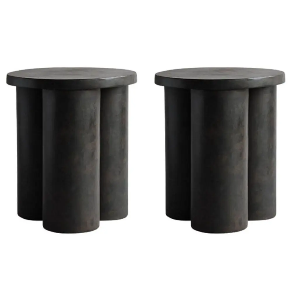 Set of 2 big foot tables tall by 101 CopenhagenDesigned by Kristian Sofus Hansen & Tommy HyldahlDimensions: L 45 / W 45 /H 51 CMMaterials: fiber concreteAt first glance the Big Foots collection looks heavy and dense, yet on further inspection, the fiber concrete bench, side tables and coffee table are lightweight and mobile. With nods to brutalist architecture and the world of contemporary sculpture, the cylinder-shaped legs and textured, painted surfaces makes the collection stand out in the crowd. All products are cast in lightweight fiber concrete to create a unique textured surface and increase mobility. Each piece is hand painted with multiple layers of paint, creating a strong and resistant surface.101 Copenhagen is a Danish design brand founded in 2017. With a vision to honor exquisite quality and craftsmanship, the collection encompasses furniture, lighting and accessories in a timeless, yet modern design. With a true passion for materials and refined textures, organic shapes and colours, 101 Copenhagen presents the epitome of classics and must-have novelties for Scandinavian and international interior connoisseurs alike.