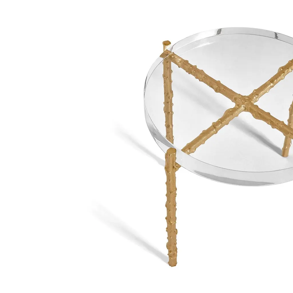 This side tables pay tribute to the invisible foundations of life on Earth. Standing on rosebush branches, molded in brass casting, the acrylic top seemingly floats, as if suspended in the air. Top: Crystal AcrylicLegs: Cast brass in Brass, Antique Brass, Silver, Antique Silver, Copper or Antique Copper.Size can be customized to fit your space perfectly.We do our best to expedite production and to ship and deliver product within the listed lead time, however current lead times might be longer due to global shipping backlog and delays. These delays are out of our control and cannot be a reason to cancel an order.