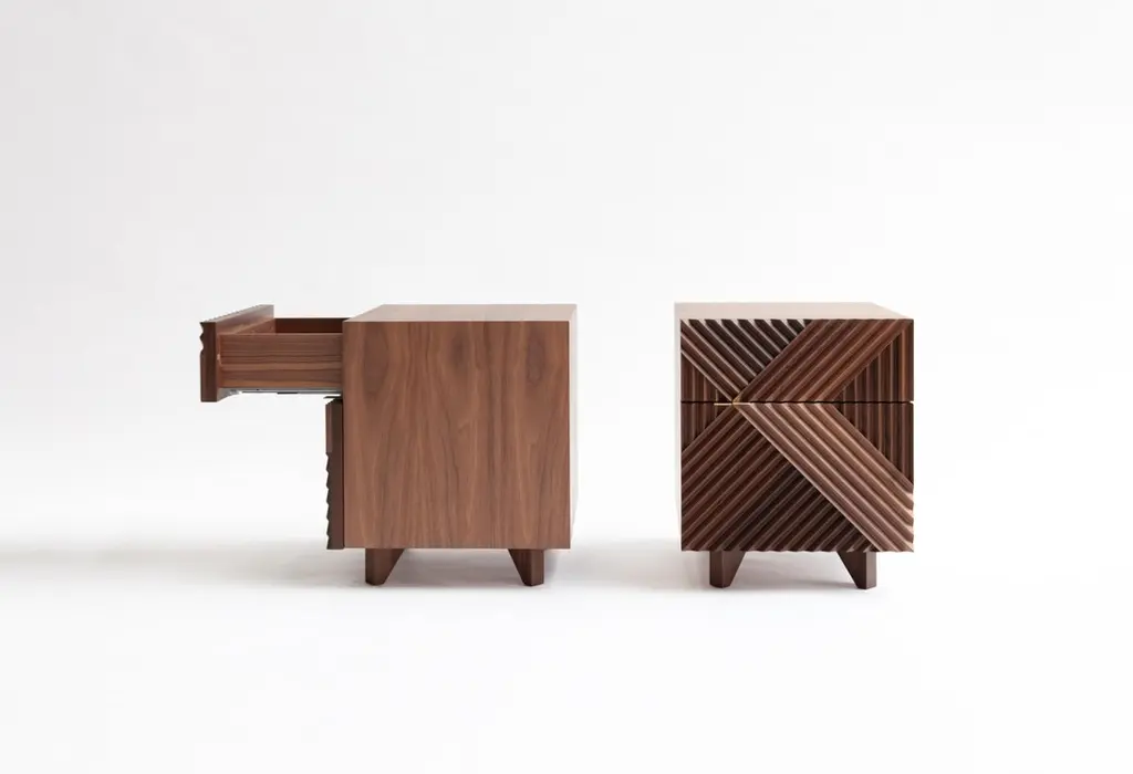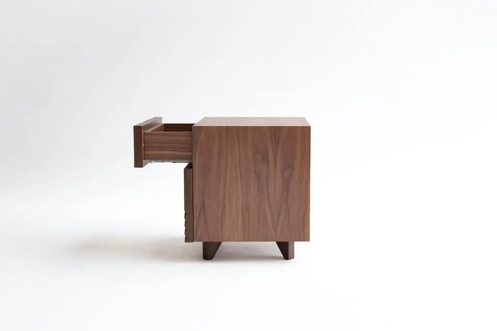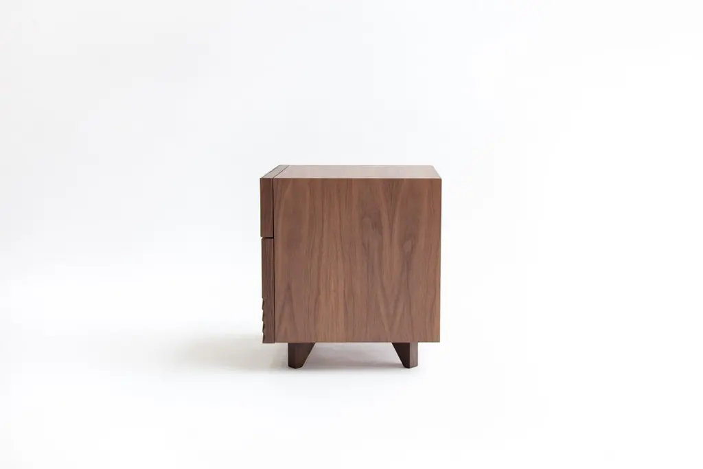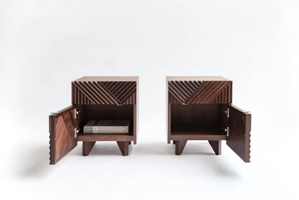 Set of 2 Enzo side table by Rosanna CeravoloDimensions: W 40.2 x D 43 x H 48 cmMaterials: Solid american walnut fronts, polished brass handles, polyurethane spray finish.Also available in different dimensions and materials.Rosanna Ceravolo is a Melbourne based architect whose multi disciplinary studio focuses on delivering a full and considered design response.Rosanna’s studio creates architecture, products, and spaces which aim to elevate the human experience.Her architectural work is collaborative, contextually sensitive, client specific and considered at both an urban and human scale with the aim of creating places for people. Her design approach focuses principally on how a space can be inhabited to ensure maximum enjoyment, considering connectivity, materiality, texture, light, and scale. As a natural progression, her work maintains a refined and detailed interior focus.These gentle transitions between architecture, interior design and product design reveal an underlying principle that no detail is too small. Rosanna’s furniture and product work is a natural extension of her design process. The work is highly influenced by inimitable beacons of modernist design and it is characterised by form, simplicity, composition and texture. Each piece is hand made to order by quality local fabricators with whom collaboration is an essential and integral part of the process.Rosanna believes passionately that good design has an inherent and unquantifiable value.