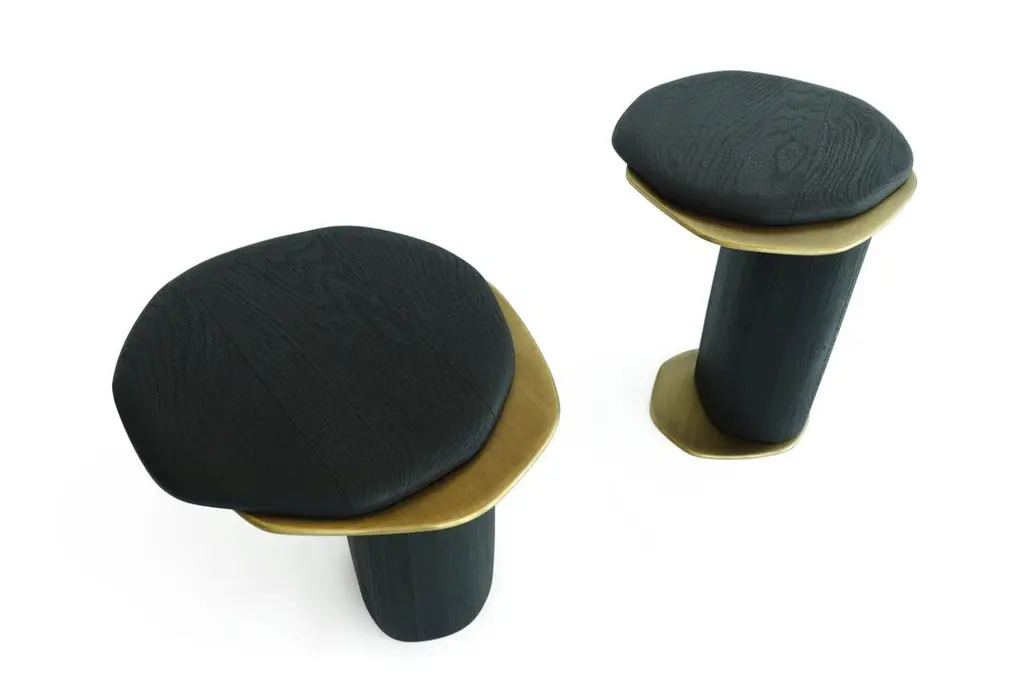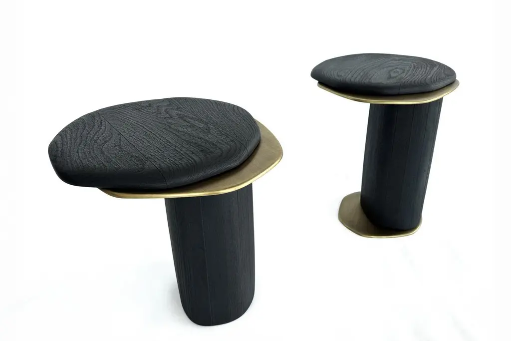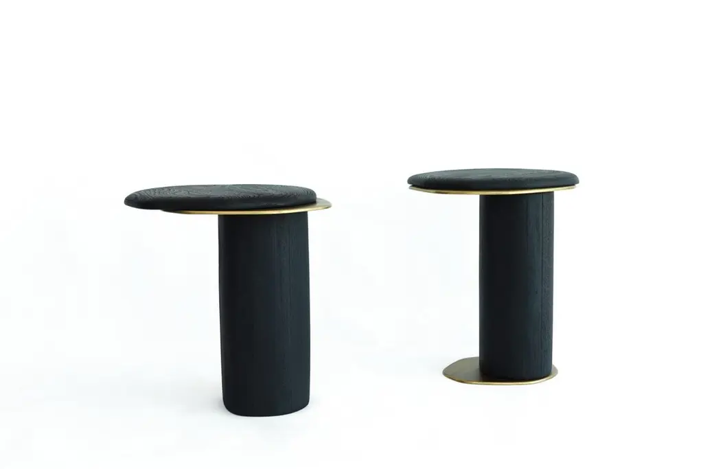 Set Of 2 Epicure Xiii Shou Sugi Ban Oak & Brass Side Tables By Grzegorz Majka