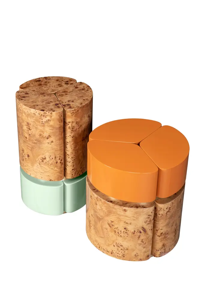 Set Of 2 Euphoria Side Tables by Memoir EssenceDimensions: Tall Side Table: D 37 x W 37 x H 60 cm.Small Side Table: D 46 x W 46 x H 50 cm.Materials: Poplar Root with high gloss lacquer and brushed brass.Available in two different sizes. Please contact us. In the mood for springtime, when color and nature are flourishing, Memoir presents the new side table set Euphoria. Fresh, dynamic, colorful but still with the elegant and classy look that Memoir brings to its collection. Blending poplar root, with brushed brass details and a choice of lacquered colors, finished in high gloss varnish, these pieces can be part of your projects together or separately. This side table set is a must-have to any exquisite project.Memoir Essence Interiors has been writing its memoirs day by day, inspired in every detail lived through a feminine world, this world brings the most delicate imaginary. Jewelry, fashion, architecture, music, art and materials are Memoir’s inspirations to materialize a collection of design pieces of furniture, upholstery, lighting and accessories.The use of noble materials like marble, brass, veneers, gold and silver leaf, Swarovski crystals as other decorative and fine materials, combined with handwork techniques as casted brass, hand-whickered fabric ribbons, gold leaf appliance, marble cutted and puzzled pieces, provide the needed essence to tell memoirs through the designed pieces and the interiors they fulfill.This collection mostly handmade and focused on details and material nobility is made in Portugal, bringing handwork techniques that are part of Portuguese history, applied in a current and differentiated way, delivering timeless pieces to your special projects. Acquire Memoir is the opportunity to travel through the feminine essence over design and experience a unique “memoir” of timelessness and exclusivity.Writing is first chapter in 2016, after a journey of inspirational research, forecasting and design, Memoir made its first appearance at Maison et Objet, Paris.Since then Memoir is “writing” memories adding new materials, designs, techniques and appearances around the world, as in Paris, London or UAE.Memoir will continue this journey, always motivated by the inspiration possibilities in the many delicate details found in feminine world.Tell your memoires with this collection and be a memorialist yourself…