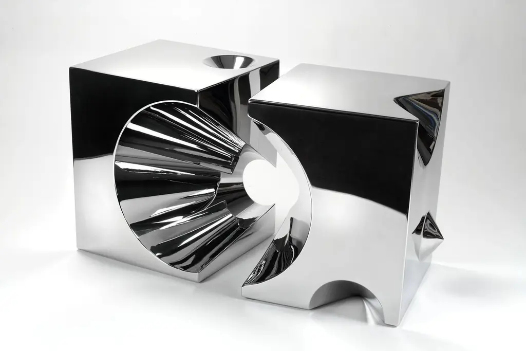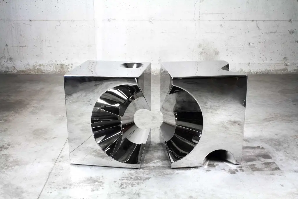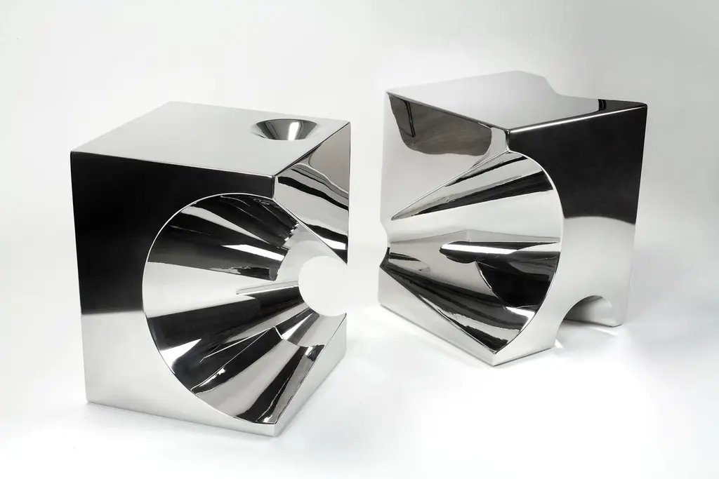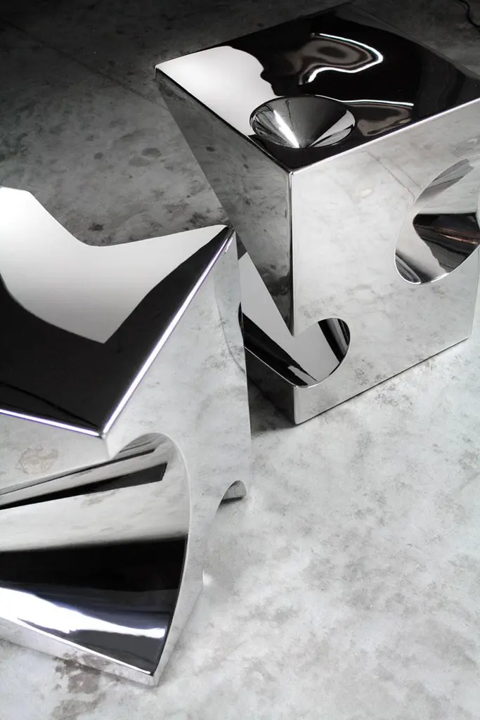 Set Of 2 Get Lost! C4 & C5 Side Tables in Stainless Steel by Barberini & GunnellLimited Edition of 12 + 2 AP + 1 p.Dimensions: D 45 x W 45 x H 57 cm. Materials: Mirror-polished stainless steel.Limited Edition, signed and numbered by the artists, comes with a Certificate of Authenticity. Also sold separately. Please contact us.Barberini & Gunnell, founded in 2009 in Ancona, Italy by architects Francesco Barberini and Nina A. Gunnell, is the result of a philosophy, thinking of design and architecture as a work of art. The architectural and interior design activity carried out by ‘The Studio’ complements the creations of ‘The Atelier’, which are the result of an artistic playground and highly skilled craftsmanship, a place where artworks and sculptures come to life.The Studio Barberini & Gunnell designs high-end residential and retail spaces that are out of the ordinary and beyond fashion. Barberini & Gunnell creates refined, timeless, and harmonious environments by inserting collectible design, “talking pieces” that create unique and bespoke homes according to the client’s eclectic and aesthetic desires.The Atelier Barberini & Gunnell creates artworks and collectible designs, one-off pieces, and limited editions for a small niche of high-end projects; bespoke solutions for luxury and ultra-luxury projects all over the world.The choice of the most precious materials, the maniacal cure for detail is the basis of our modus operandi aiming to create timeless pieces, using marine grade stainless steel, brass, cast bronze, precious wood essences, marbles, onyxes, semi-precious gemstones, crystal glass, together with the most sophisticated technologies and quality craftsmanship.This allows us to work for clients like Four Seasons Hotels, The Ritz Carlton, Regent Seven Seas Cruises, Louis Vuitton, Cartier, Dior, Paramount Pictures, Peter Marino Architects, Sotheby’s, Bonhams, Foundation of Maestro Andrea Bocelli, Ridley Scott (House of Gucci) besides our private collectors and clients.Values such as sustainability, the use of natural materials, the rediscovery of eco-sustainable craftsmanship, and the protection of refined and ancient techniques that are increasingly being lost are the basis of the design.Barberini & Gunnell’s signature works are exhibited at international art fairs such as Art Basel Design//Miami, Art Miami, Art Basel Switzerland, PAD London, PAD Genève, PAD Paris, PAD Monaco, Salon Art+Design New York…