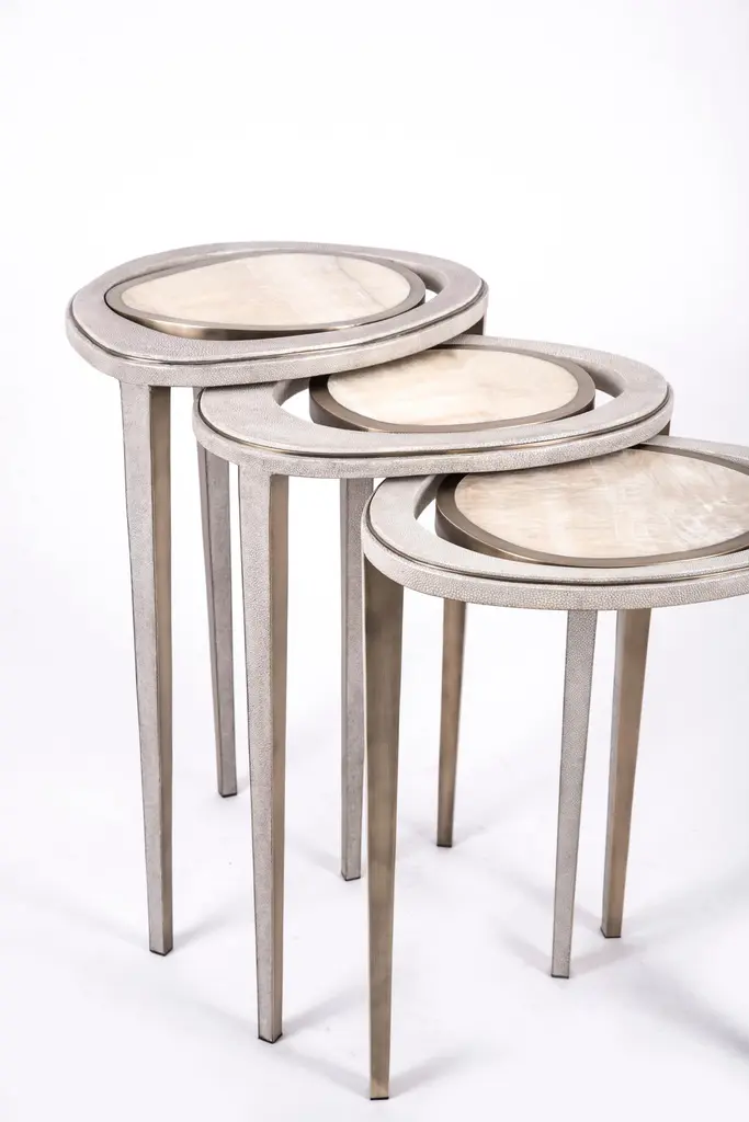 Set Of 2 Peacock Nesting Tables In Shagreen Tiger Eye, And Brass By R&y Augousti