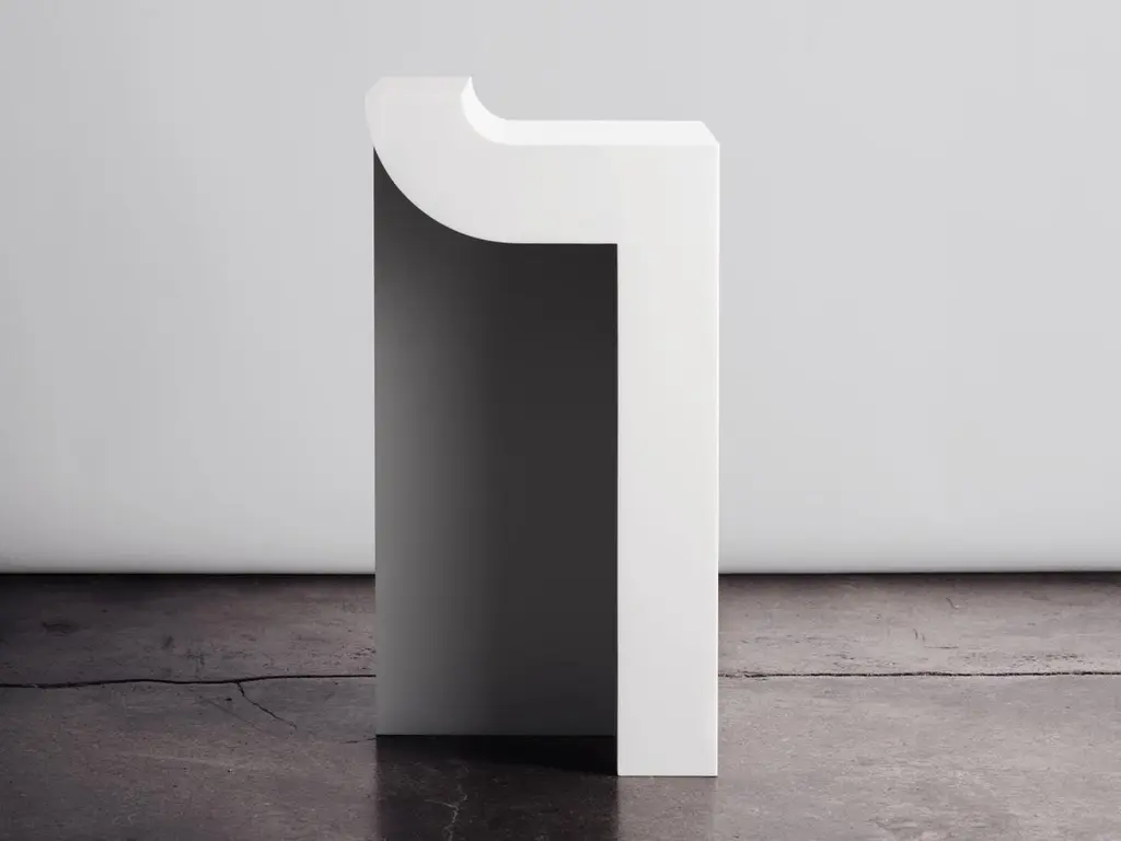 Set Of 2 Pilast Sculptural Side Tables by SNICKERIETDimensions: D 32 x W 28 x H 55 cm. Materials: Stone composite.Pilast can be customisable in color. Please contact us.Pilast is a sculptural piece of occasional furniture. It is inspired by the early19th-century neoclassical style ’Swedish Empire’ and serves as both a side table and a stool. Pilast is crafted using traditional wood bending techniques applied to a modern, pure white stone composite. The result looks as if carved from marble, but a closer inspection reveals an unexpected precision in both material and shape. As an amalgam of classical clues, traditional craft, and modern material, Pilast has an unusual presence.SNICKERIET is a furniture studio with an explorative approach to traditional woodworking craft and philosophy. Projects are initiated as research into topics revolving technique, construction, decoration and material properties. The findings are released in the form of individual pieces of furniture. The studio was founded in 2011 and is based in Stockholm and Gothenburg.Karl-Johan Hjerling, designer, creative director, founderGunnar Dahl, Production manager, founderHannu Hietamäki, Lead cabinet makerRobert Zillén, Head of studio and client matters