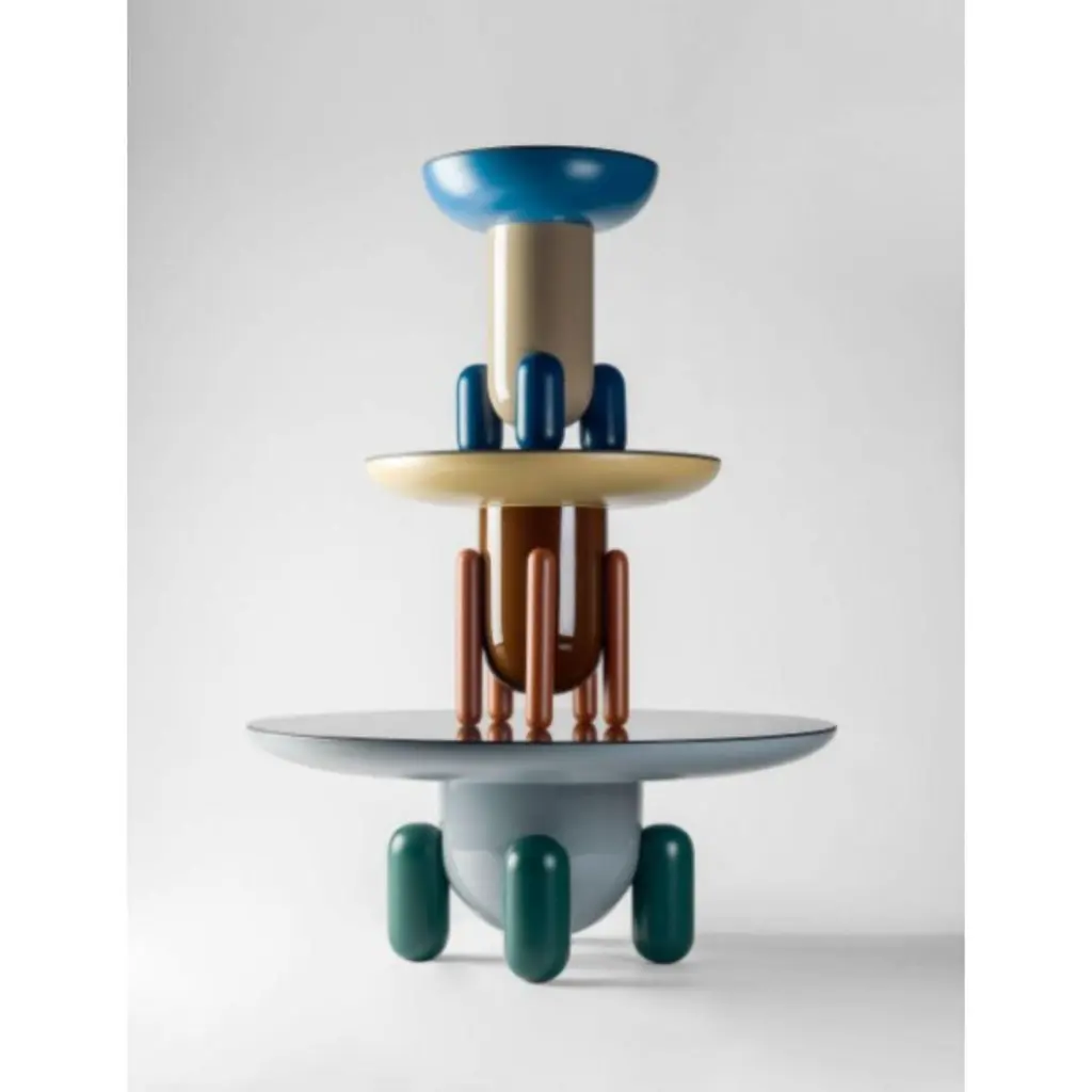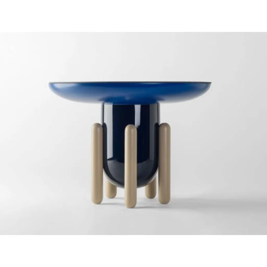 Set of Explorer side tables by Jaime HayonDimensions: D40 x H50 , D60 x H46 , D100 x H42 cmMaterials: Lacquered fiberglass body. Solid turned wooden legs and lacquered. Painted glass tabletop.Available in sizes Explorer 1 (Diameter 40 cm) and Explorer 3 (Diameter 100 cm). And also available in monochromatic colors.A series of side tables, Explorer 1, 2, and 3 inspired by the playful and what remind one of the jelly-beans, rounded sweets that those children eat in the US. This childlike inspiration has at the same time a very elegant beauty which generally is characterized in my designs. It’s about new shapes, different objects within the market that want to convert into emblematic pieces because these tables are not only functional but sculpturally strong. Painting some of the parts with a gloss finish and others in matte at the same time, reflective top surfaces and the different combinations of colors give even more richness to the collection which pretends to be blatantly decorative. They are pieces that communicate. There are also mono-color versions carrying the same sculptural character, exclusively offered through BD.The maximum weight on the table is up to 10 kgs. Indoor use only. In 1972, a group of young architects and designers from Barcelona created BD with the aim of producing and marketing furniture and other objects for our projects, with complete creative freedom and with a criterion that has turned out to be quite different from the norm at companies in the sector, regarding both the shape and function.
