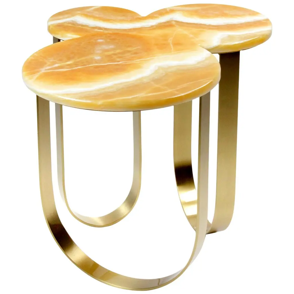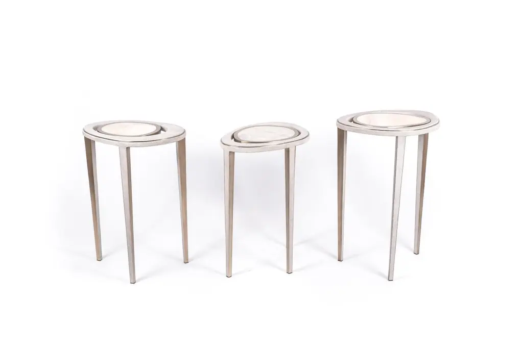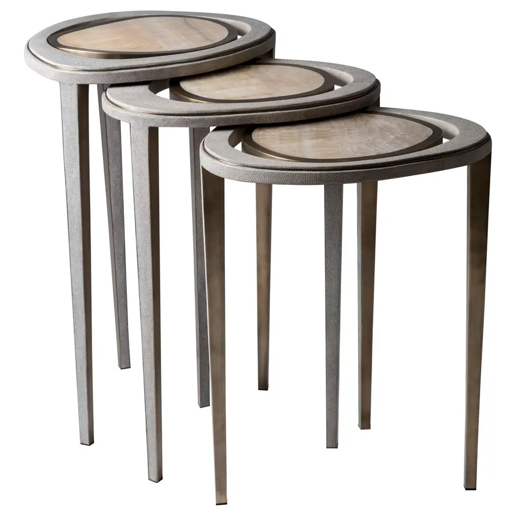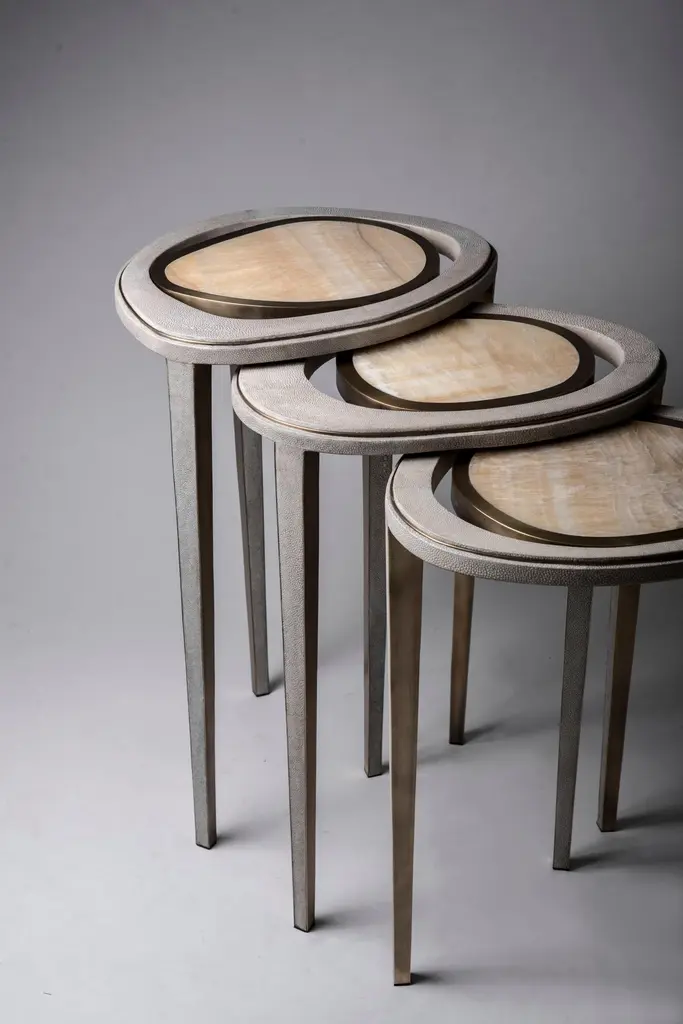 Set Of 3 Peacock Ii Nesting Side Tables In Shagreen & Brass By R&y Augousti