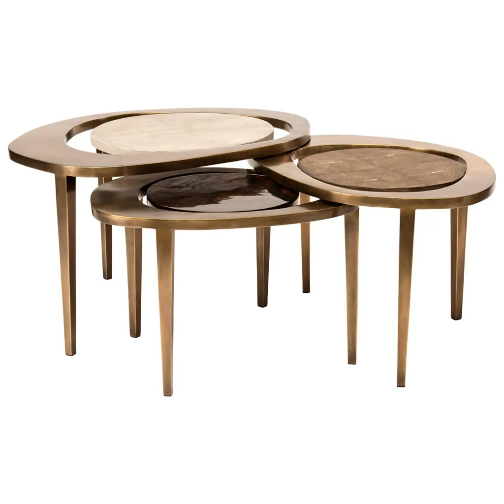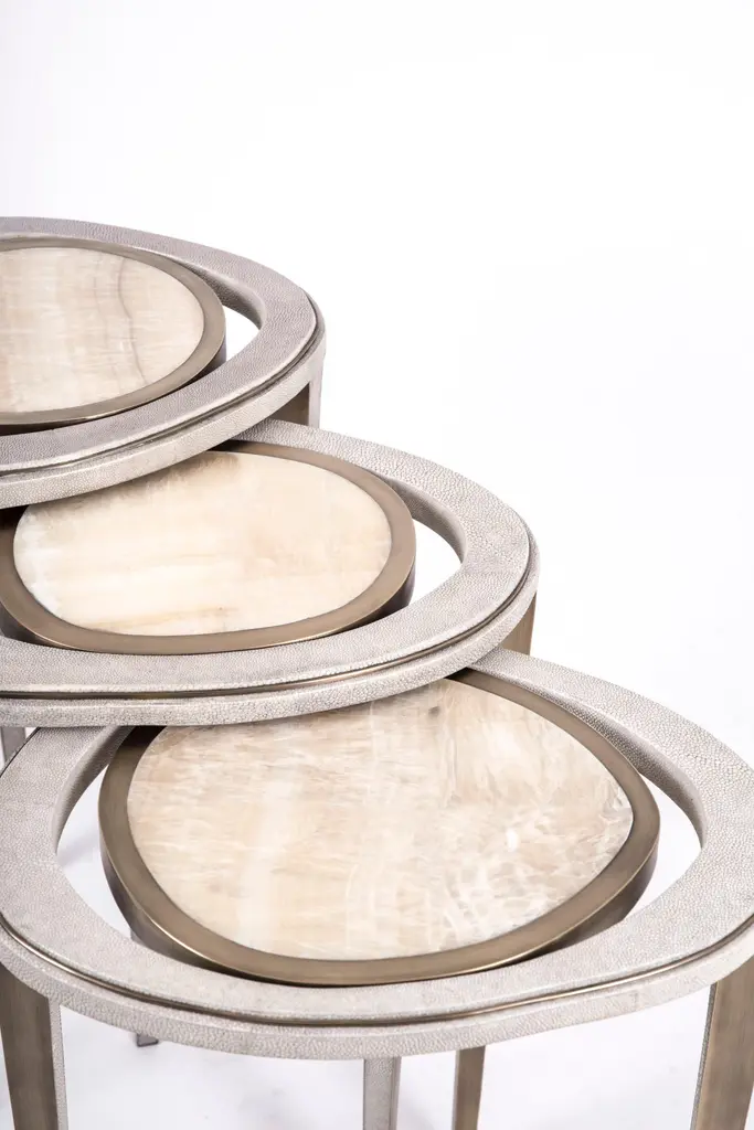 Set Of 3 Peacock Nesting Side Tables In, Shagreen, Shell & Brass By R&y Augousti