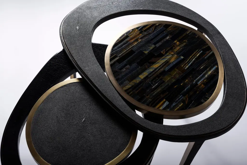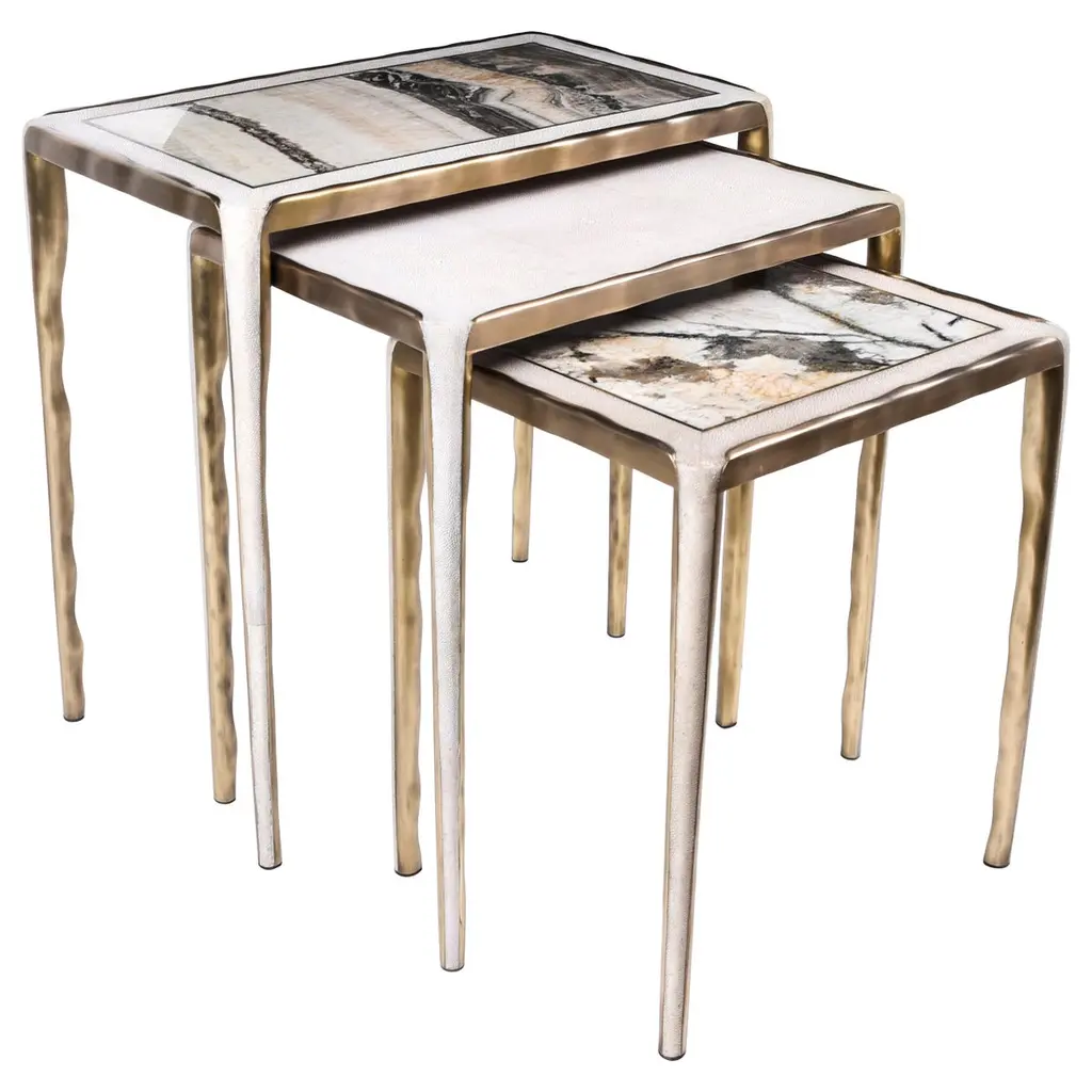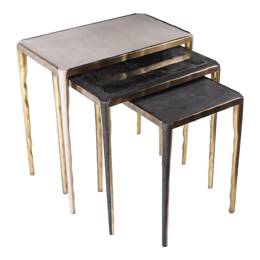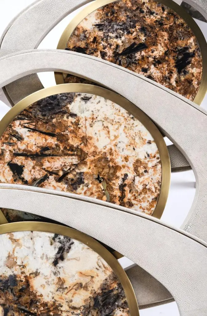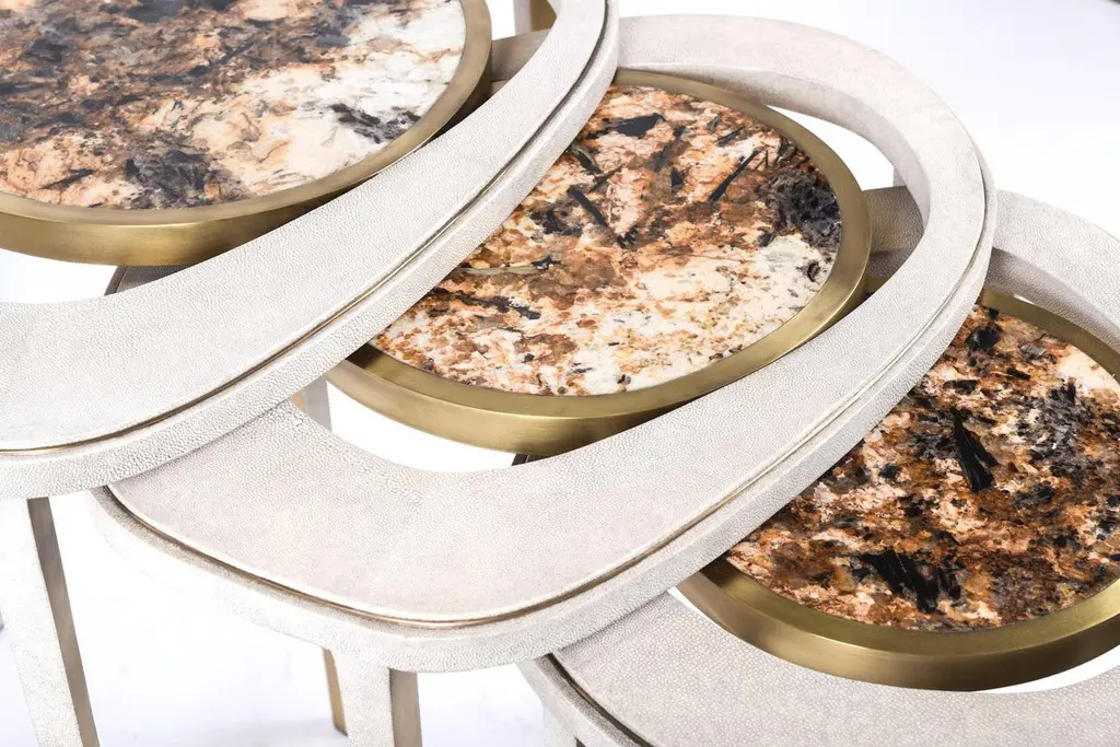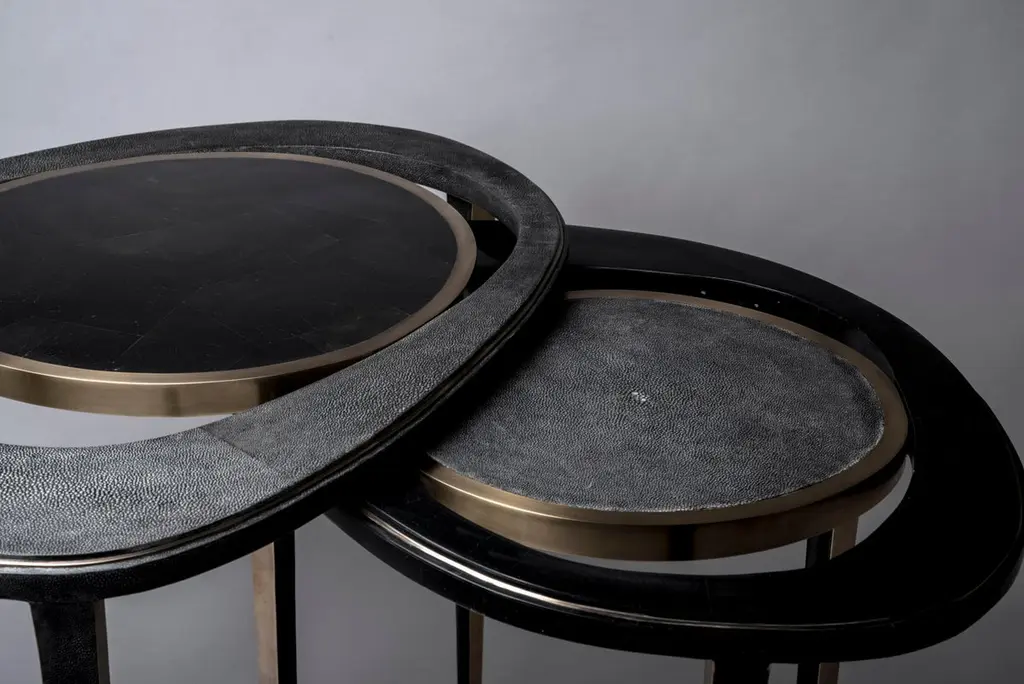 Set Of 3 Peacock Nesting Tables In Shagreen Hwana, And Brass By R&y Augousti