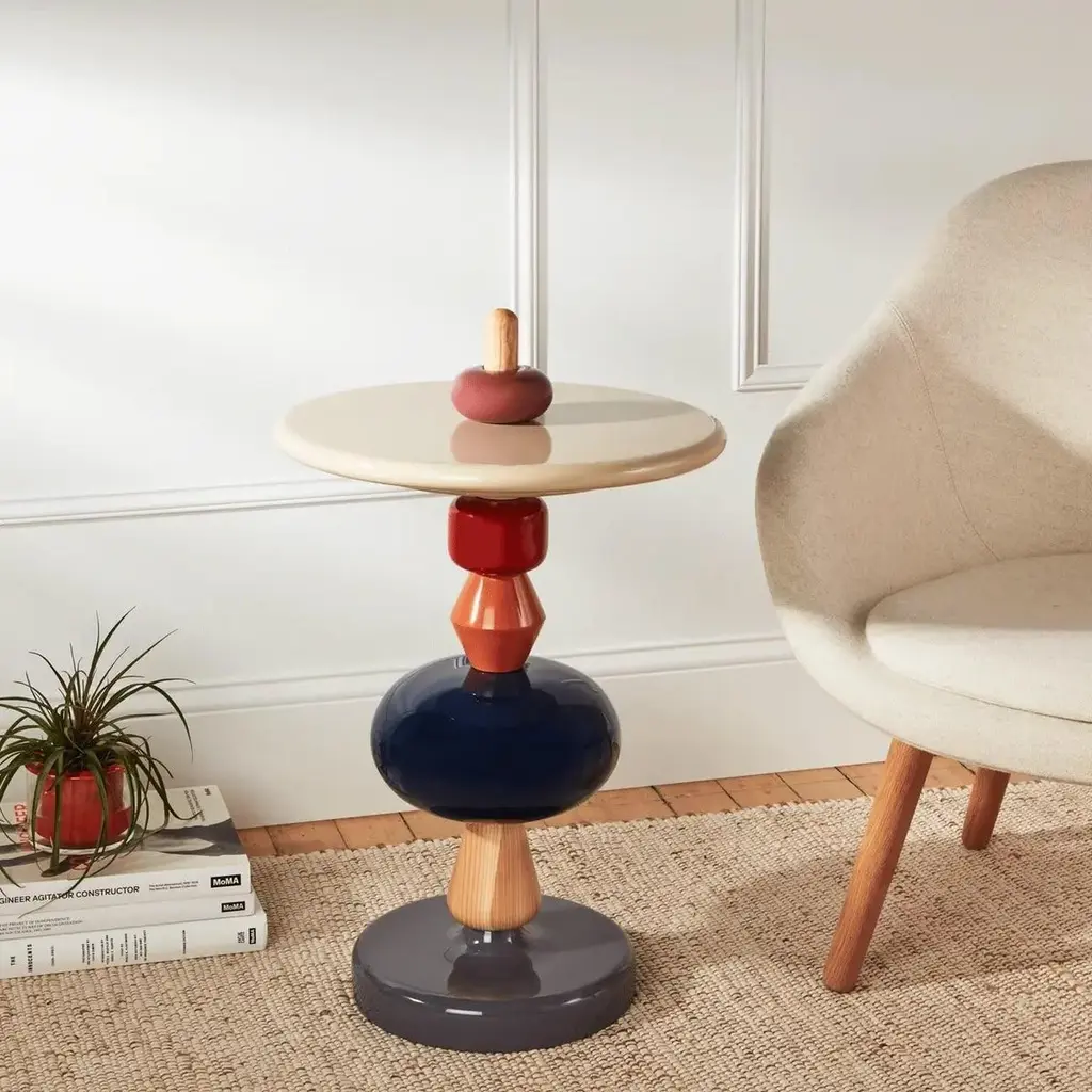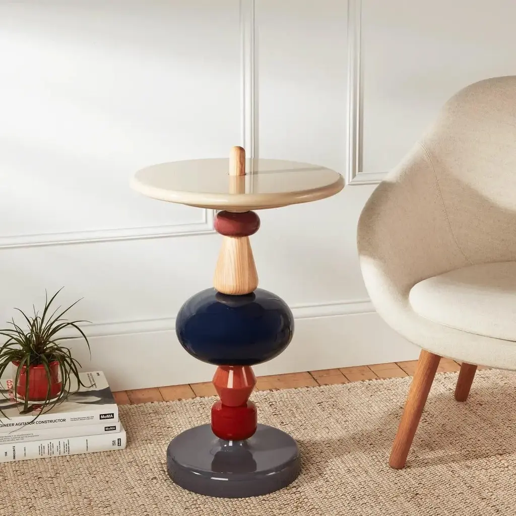 The Shuffle table seems to conjure images of classic wooden toys and with good reason. The choice of colours and the fact that you can unify and construct the table as you like are all ideas Mia Hamborg got from the Brio Stacking Clown she had as a child. She wants people to feel a sense of joy when they see her design. With the opportunity to decide the shape, colour and height of the table, the Shuffle table is a truly Nordic approach to democratic design.All pieces of the table are made from lacquered MDF and solid wood.The lacquered parts are PU coated to ensure a durable and high gloss surface.EnvironmentIndoorDimensions Ø: 45cm/17.7in, H: 69cm/27.2inWeight 11 kgDesignerMia HamborgMia Hamborg hails from Norway, where an education in advertising and graphic design led to interior design consultancy contracts on the side. Armed with a Bachelor of Arts in furniture design with an emphasis on wood, Hamborg fuses functionality with humour in her endearing designs. With the 'Shuffle' table she revitalises the Nordic craft of turning wood. Dating back to the Viking Age, it involves a foot-powered pole lathe to rotate the wood, using a sharp tool to shape it."I want people to feel a sense of joy when they see my designs," says Hamborg. "To walk into a room and suddenly smile."