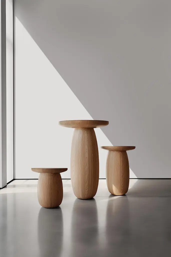 Introducing the Samu Collection by NONO, where simplicity meets elegance in the form of sculptural stools, side tables, and plinths. Each piece in this collection boasts a gently domed and smooth circular top, paired with a uniquely shaped base. Handcrafted from solid wood, the Material has been force-dried over a long period of time to enhance its natural grain and structure, resulting in small and larger cracks that add character and depth to the design.Samu offers three different heights, each with its own geometrically shaped base, making it a versatile collection suitable for any space. As each piece is made to order, no two are exactly alike, adding to the collection's charm and exclusivity. Available in natural or darker brown finishes, the Samu Collection ships fully assembled, ready to elevate any room.Please note that due to the nature of the Material and design, there may be small variations in the final product. With a production time of 3-4 months, the Samu Collection is a testament to NONO's commitment to quality and craftsmanship.Dimensions: CM H 40 x W 40 x D 40IN H 16 x W 16 x D 16CM H 55 x W 40 x D 40IN H 22 x W 16 x D 16CM H 75 x W 45 x D 45IN H 29 x W 18 x D 18—NONO is a Mexican design brand with more than 10 years of experience dedicated to the production of interior furnishings, editions, and custom made projects. At NONO, we create pieces of extraordinary beauty, accommodating the particular needs and tastes of each client with exclusive high-quality designs.————Some details to consider when placing an order with us:• Catalog images are digitally generated. Actual products may slightly vary in texture, grain, and final finish due to natural material differences. Despite these variations, our expertise ensures each piece maintains high quality and matches the intended design.• All of our products are made to order, and the lead time for standard products is estimated to be 9 to 12 weeks, plus shipping time. However, special pieces or sculptures may require a longer lead time.• We offer customization in dimensions and finish for all of our furniture pieces, which may result in additional charges.• We only facilitate freight services by a third party. The client is solely responsible for any associated import/export taxes, as well as any necessary customs paperwork.• We are not responsible for any damages that may occur during shipping or for any customs-related delays.