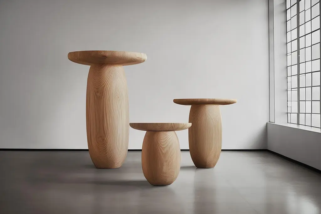 Set Of 3 Small Tables, Side Tables, End Tables Samu Made Of Solid Wood By Nono