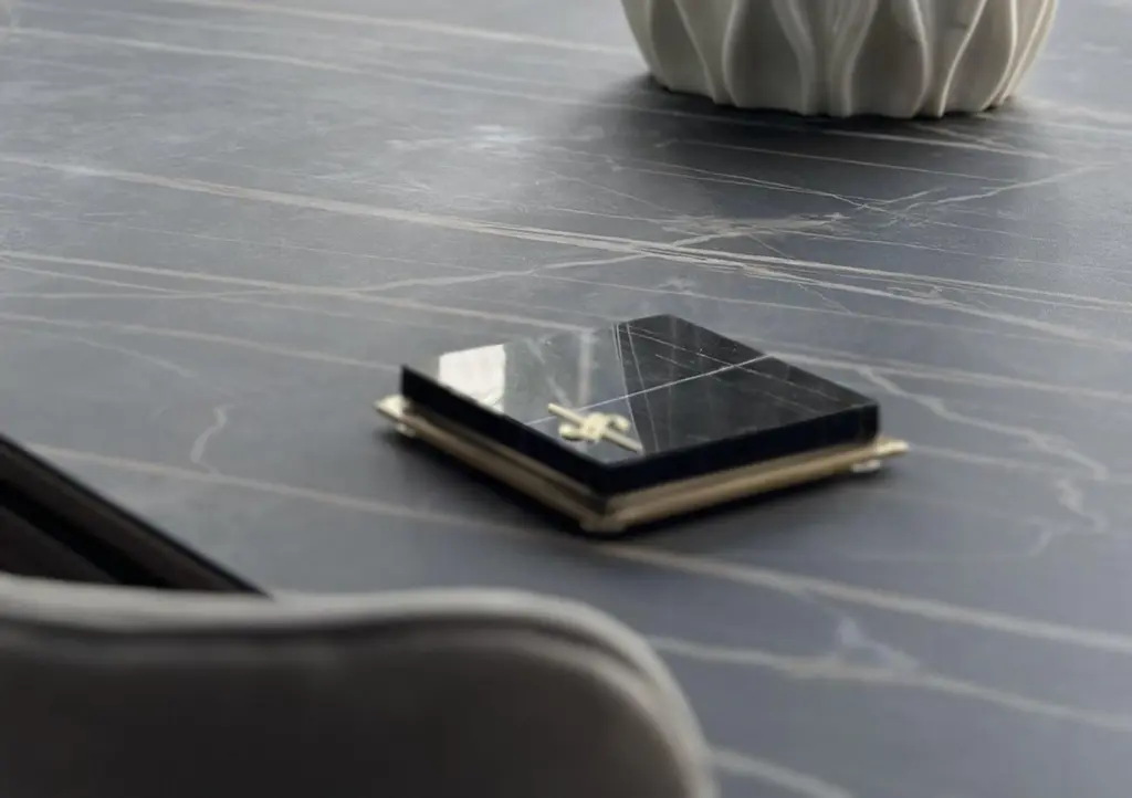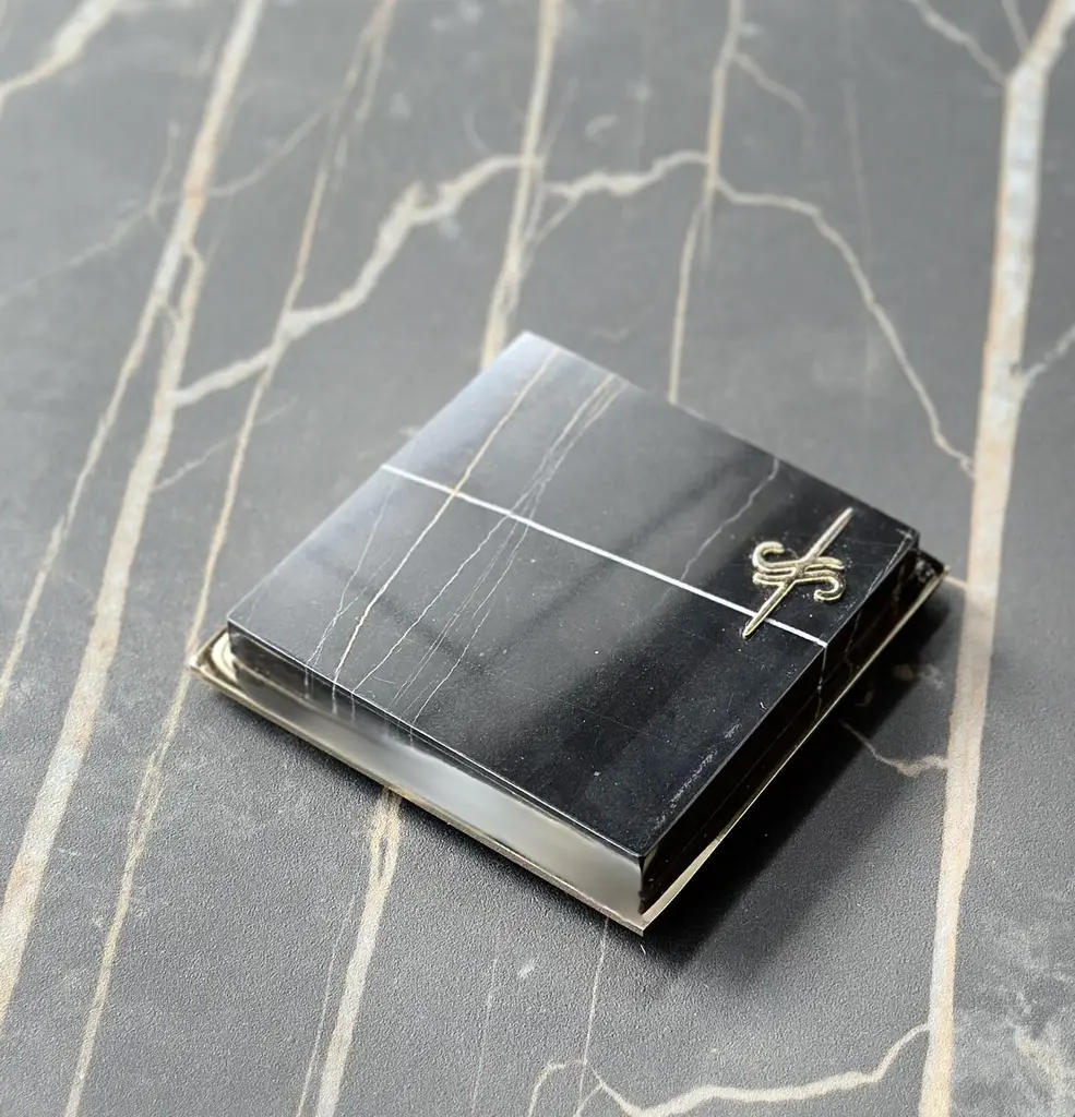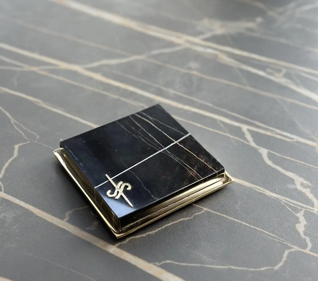 Set of 6 Marble Coasters by Euromarmi StoreDimensions: D 11 x W 11 x H 2.5 cmMaterials: Sahara Noir marble, 24K Gold-Plated.Founded by Angela Stiuso, Euromarmi Store was born from the experience and dedication that the stone processing has passed down from generation to generation.Each creation carries with it the legacy of centuries of Italian craftsmanship and meticulous manufacturing enhanced in every single process, in perfect balance between tradition and innovation. Our fine materials, manual skills, and passion are the assets that guide Euromarmi Store in the production of inimitable objects, creating a rare and magical identity with timeless elegance.Our wide range of products offers a wide choice that ranges from furnishing accessories to objects, from mineralogy to natural stone jewelry. In addition, we offer a highly specialized design service for the planning and construction of interiors and exteriors, using highly technological machinery capable of satisfying every personalized request.Production strictly follows sustainability principles, adopting practices aimed at reusing and enhancing resources. We are committed to maximizing the value of each material treated, ensuring that nothing loses its intrinsic value. This ethical approach translates into a responsible production cycle, aligned with the highest standards of environmental sustainability.
