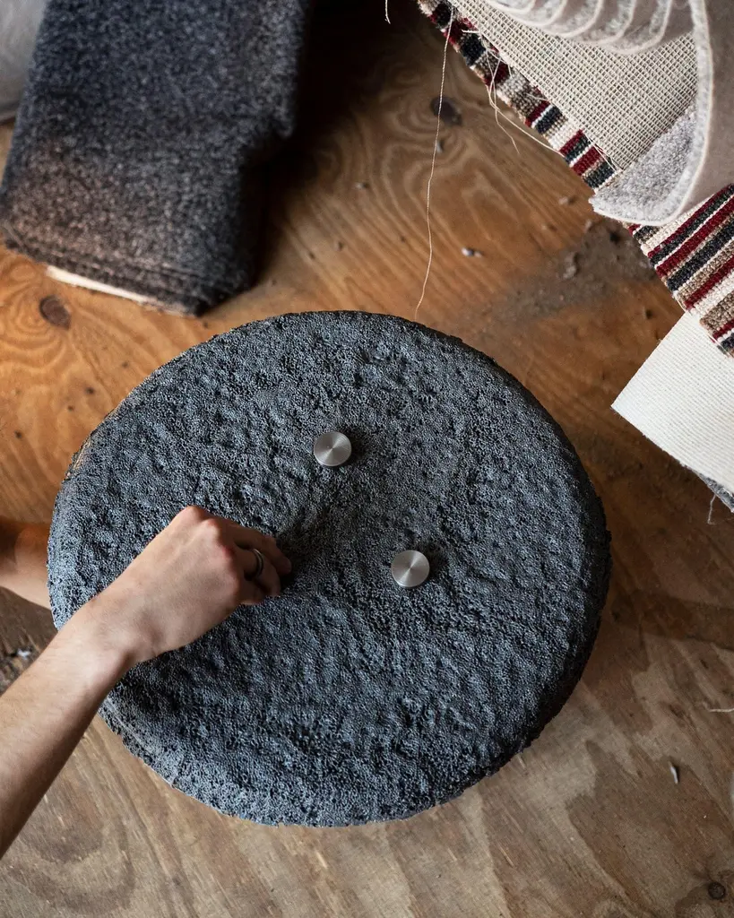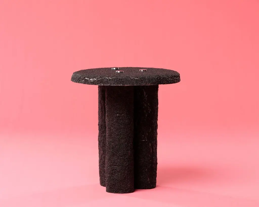 Set of carpet matter side table 65 and low table by Riccardo CenedellaDimensions: 65 x 65 x H 55 cm65 x 65 x H 35 cmMaterials: Waste synthetic carpet.I am Riccardo Cenedella I graduated in Product Design from Politecnico di Torino in 2016 and straight after my graduation I started to work for an art design studio in Turin. There I started to develop my passion for making things with my hands and became confident with using the most common tools. However, while I was in the process of creating, I started to feel guilty about making objects only to satisfy my pleasure but without a specific purpose, and be part of the conventional linear model of take-make-discard and the current approach to materiality and objects. For this reason, in 2019, I decided to study MA Material Futures at Central Saint Martins in London. Studying there I came across the theory of Charles Levi-Strauss who described the figure of the bricoleur as the one who always makes with "whatever is at hand", after research into this topic I find out that for me this means to set the limit of my practice to the use of only waste materials.Inspiration:The Carpet Matter collection is a great representation of my practice: as an alchemist, through ingenuity, persistence and hands-on experimentation, a useless material is transformed into design artefacts.While I was researching about what waste material I wanted to use for my final year project, I bumped into some carpet waste during a walk around my neighbourhood. This material grabbed my attention and when I discovered that the vast majority of carpet is made with thermoplastic materials I decided to experiment treating it as a common plastic. Through hands-on experimentation with synthetic materials, I developed a technique that allows me to reshape and repurpose this material for the creation of new design artefacts, avoiding carpet from ending up in dumpsites.