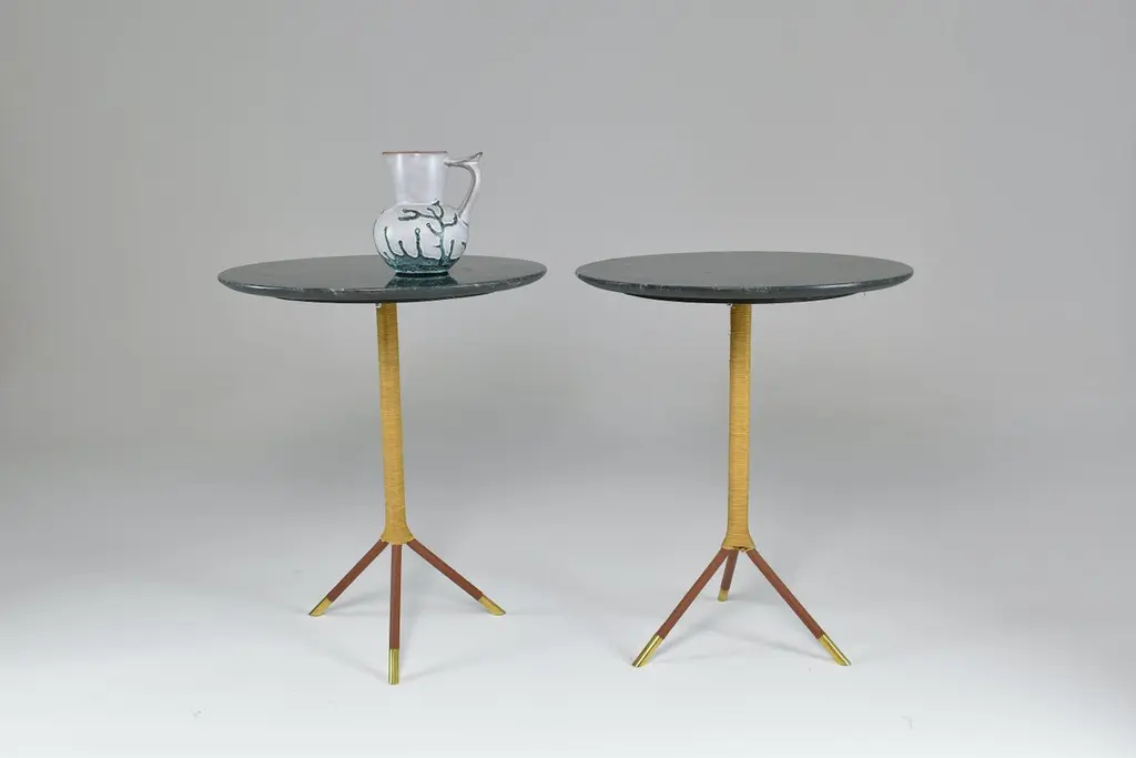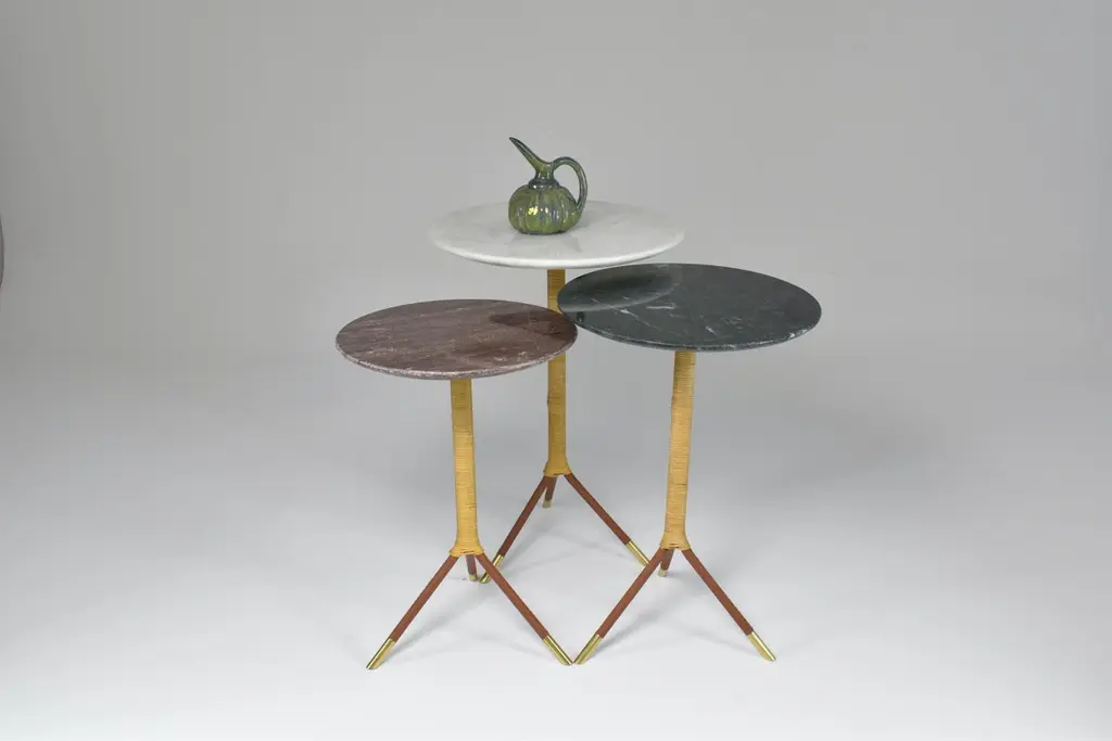 Set Of Taly Marble Rattan And Leather Gueridon Tables By Jas