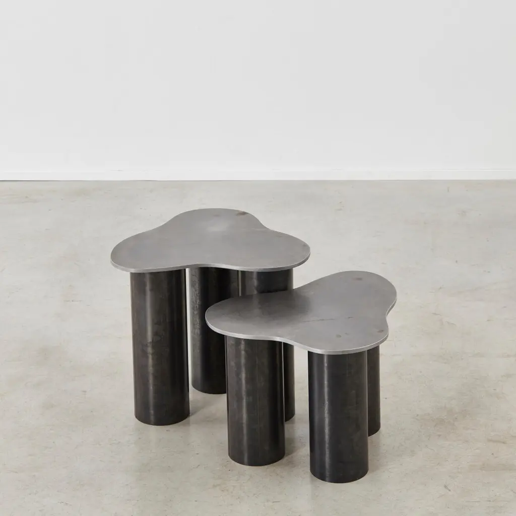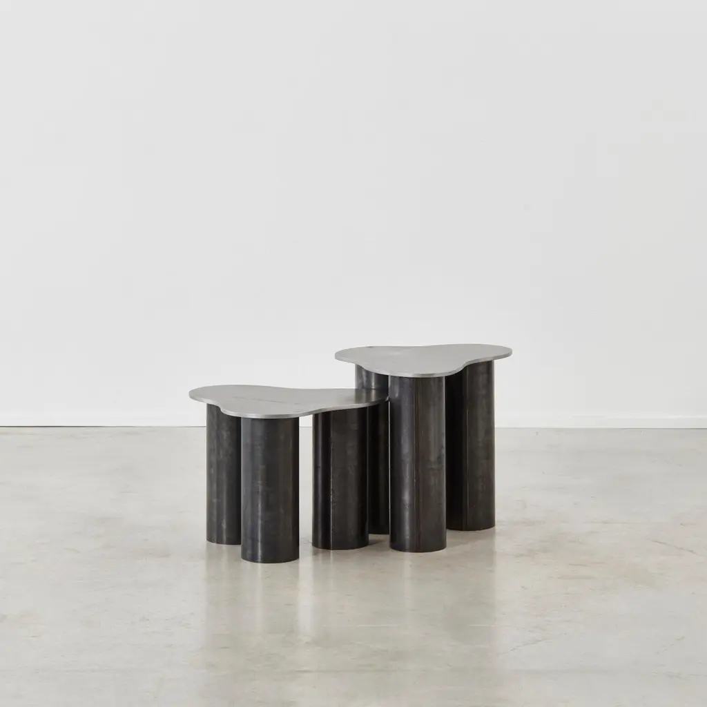 Side table 001 is a made to order design by Archive for Space, a multidisciplinary design practice founded in London in 2019. Side table 001 was designed to celebrate raw steel through exploring the material’s cyclical nature. Made from standard tube sizes and gauges, the entire piece is fully recyclable. The raw materials are untreated allowing the surfaces to develop a patina over time that tells the story of the piece. Each piece is handmade in Stoke-on-Trent, UK.The tables come in two heights shown in the last image each listed separately. The tables will show some signs of patina and surfaces marks already, which are innate to the material. Archive for Space is Arabella Maza and Stephen Maginn. They work across architecture, interiors, industrial design, installation and set design. Arabella was educated at The Architectural Association and Stephen was educated at The University of Edinburgh and Edinburgh College of Art. The studio also leads a design unit at The University of Cardiff entitled Archiving Place. Archive for Space adopts a unique approach to each project, drawing and synthesizing on an extensive archive of references and disciplines blending their research into a conscientious yet individual experience. They first met while working on a diverse range of projects at the late Sir Terence Conran’s architecture, interior design and product design studio, Conran and Partners.