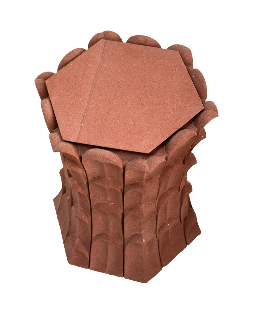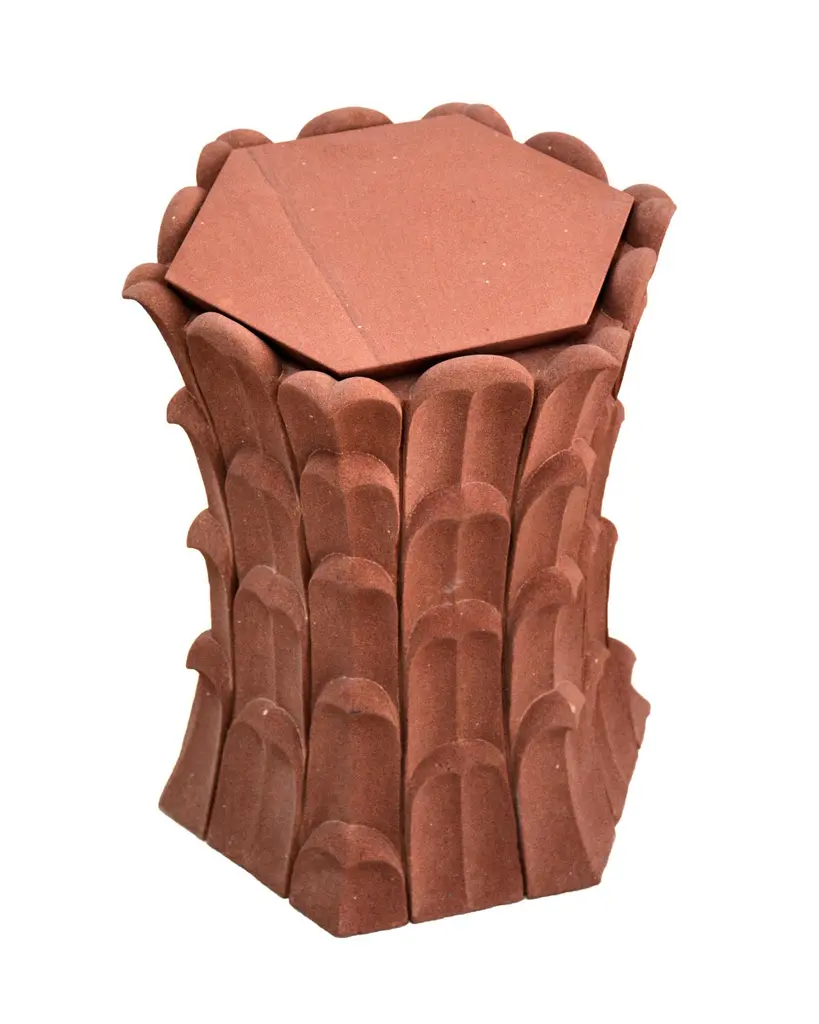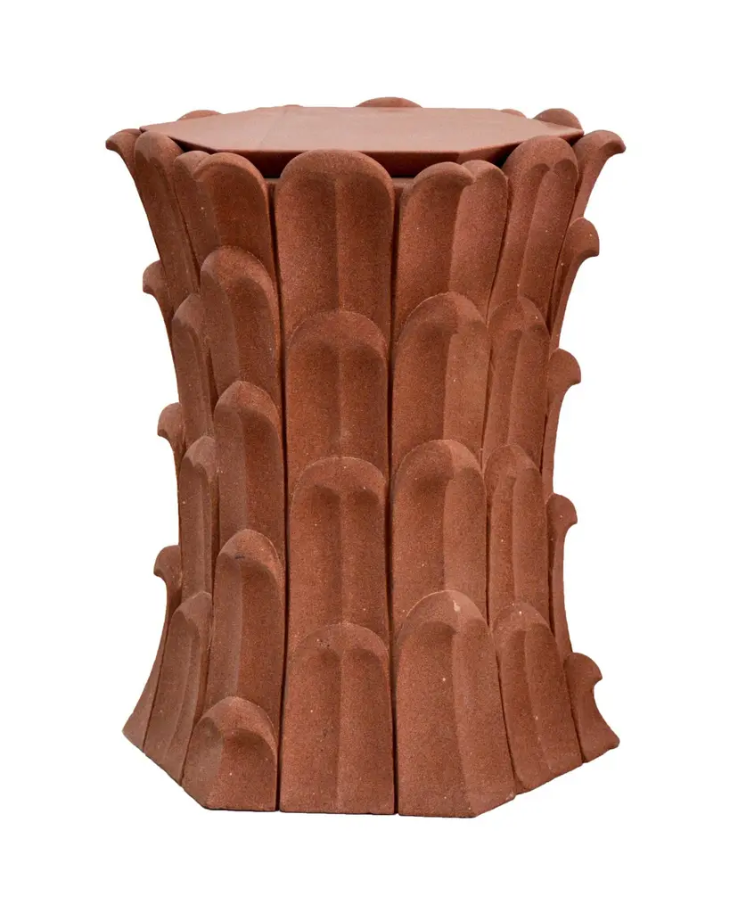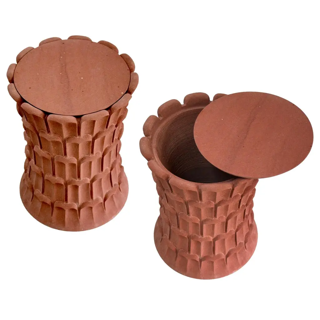 Set Of Two Bamboo Grove Side Tables In Agra Red Stone Handcrafted In India