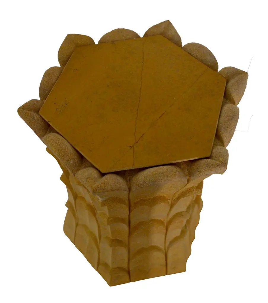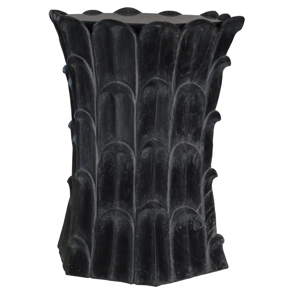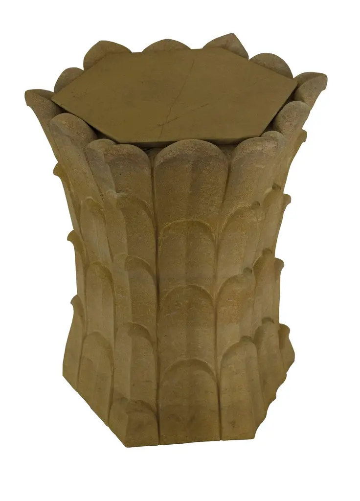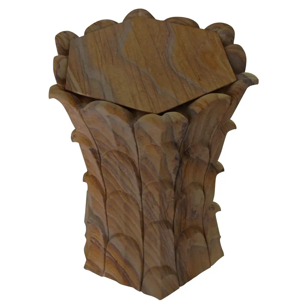 Inspired by the temple carvings in and around Udaipur, Stephanie Odegard designed this unique side table using locally available stones. The arrangement of the carved leaf motif gives an impression of a dense Bamboo Grove.Set of Two Bamboo Grove Marble Tables in Jaisalmer StoneSize- 12" x 12" x 18" HMaterials - Jaisalmer Stone, Hand Carved, Semi matt finished.Buyer Cancellation-The cancellation charge is 25% which increases to 50% if the production is started.Prices do not include shipping from India (for custom orders) or our MN warehouse (items from stock). That will be additional.