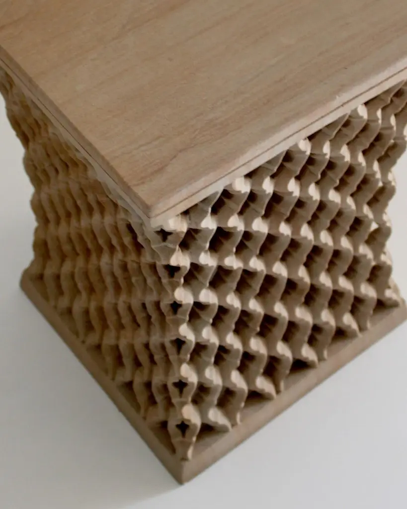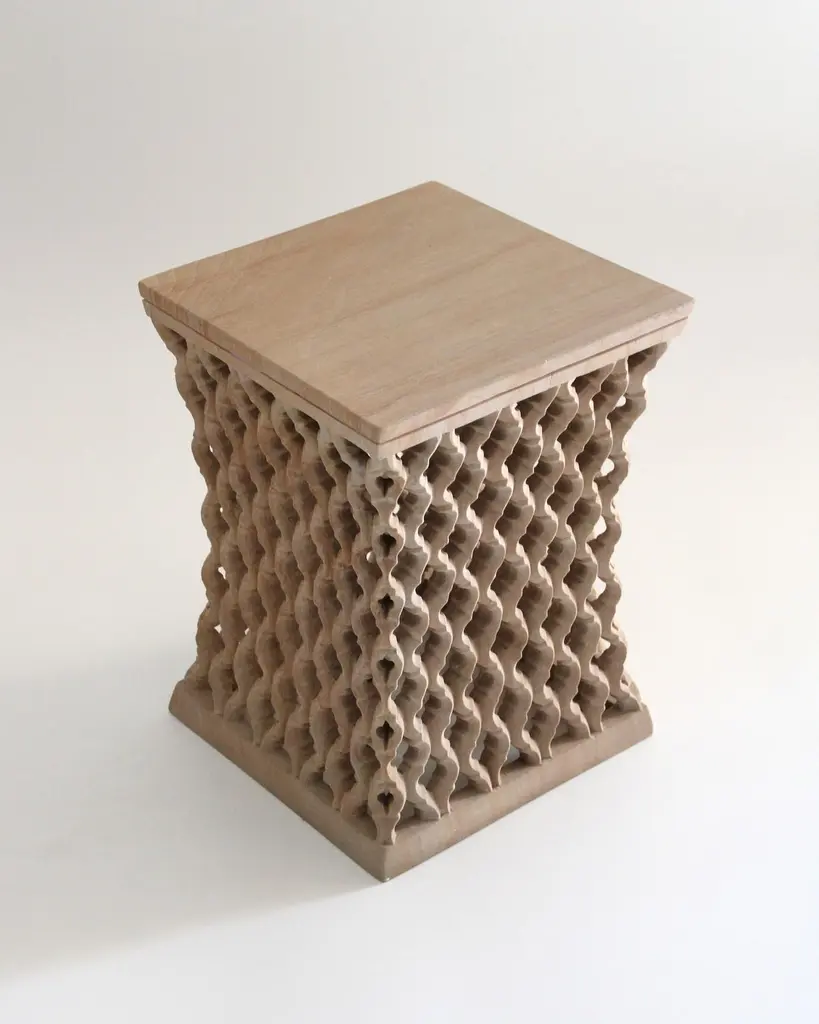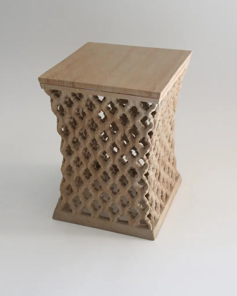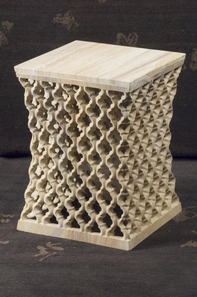Inspired by the elegant pierced marble “jali” screens and windows he saw in the palaces of Mughal India, the renowned designer Paul Mathieu has created a unique collection of hand-carved side tables. Manufacture: Solid blocks of marble are hollowed out and hand-carved into low elegant tables through which light and air pass with ease. The intricate jali patterns are first traced onto the surface of the stone. Craftsmen then hand chisel and form hundreds of intricate, interlocking patterns in each piece before the tables are polished by hand.Jour Jali Square Tables in Rainbow teak wood Marble Size- 12" x 12" x 16" HMaterials - Rainbow teak wood Marble, Hand-Carved, Semi matt finishedBuyer Cancellation-The cancellation charge is 25% which increases to 50% if the production is started.Prices do not include shipping from India (for custom orders) or our MN warehouse (items from stock). That will be additional.