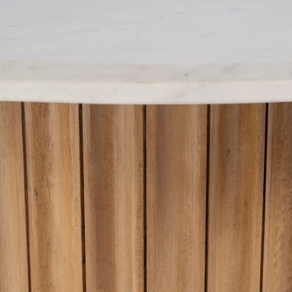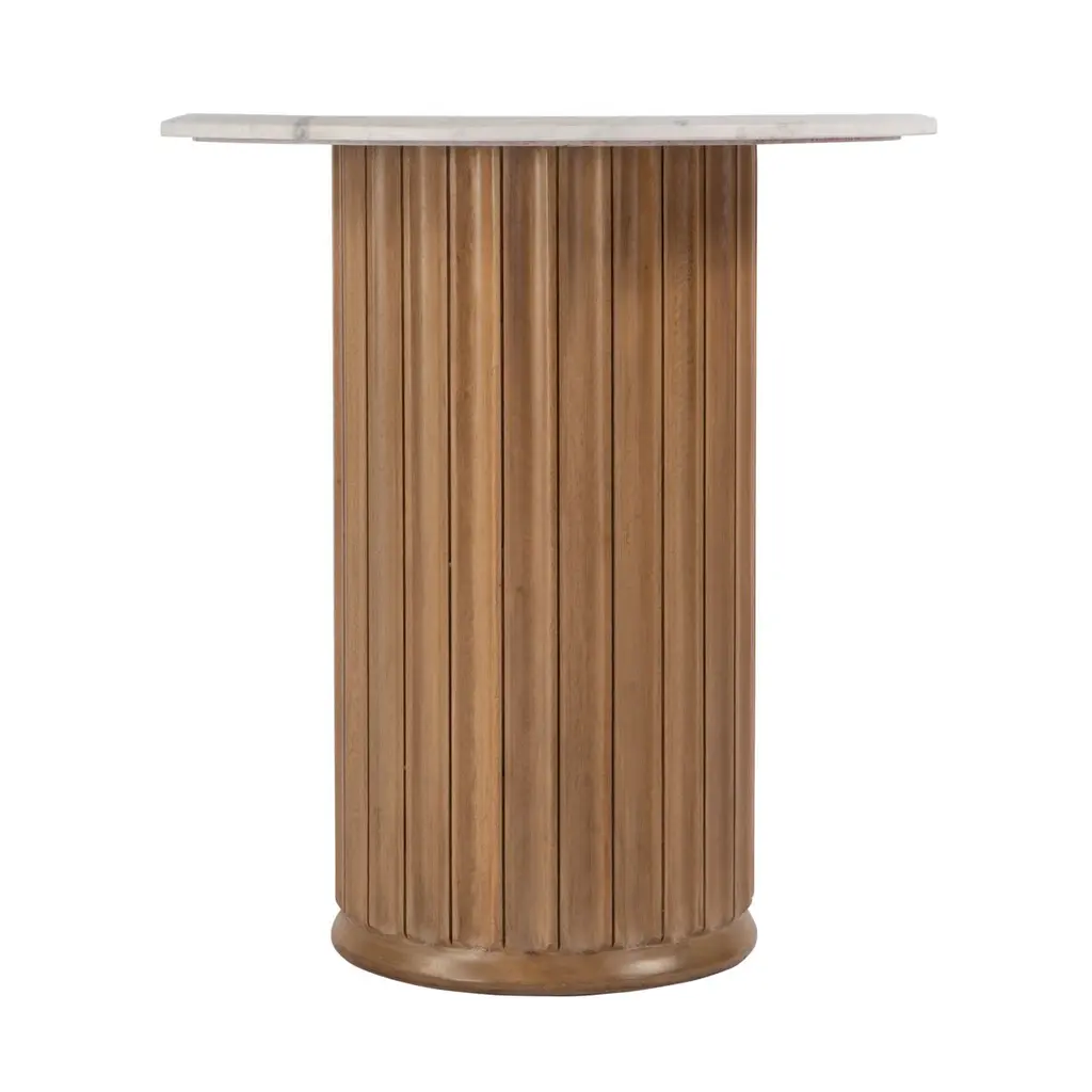 Elevate your living space with this exquisite side table, where the natural beauty of marble meets the warm, earthy tones of solid mango wood. The round marble top exudes a timeless elegance, perfectly balanced by the pedestal base. Standing at 24 inches high, this table is a stunning blend of classic and contemporary design, making it a versatile piece that adds both style and function to your home.